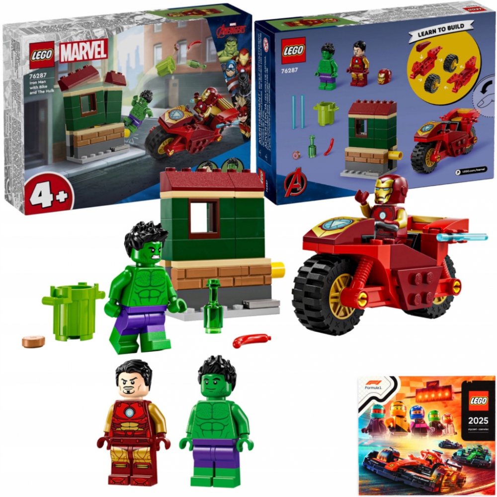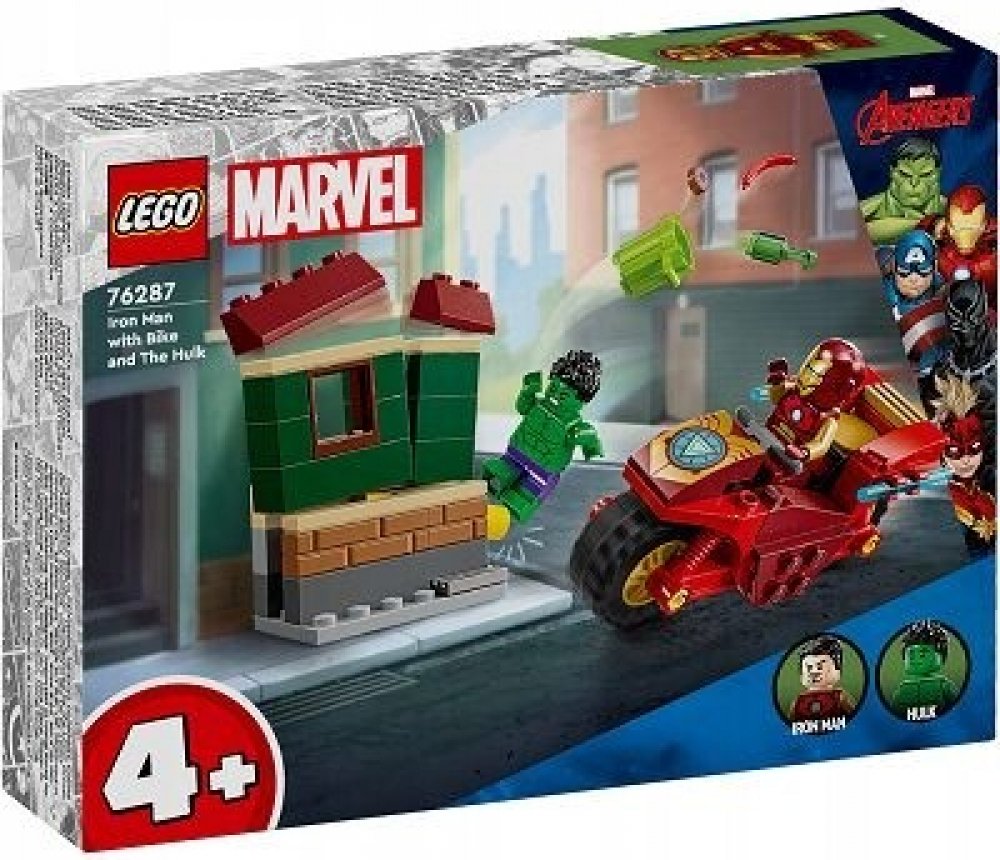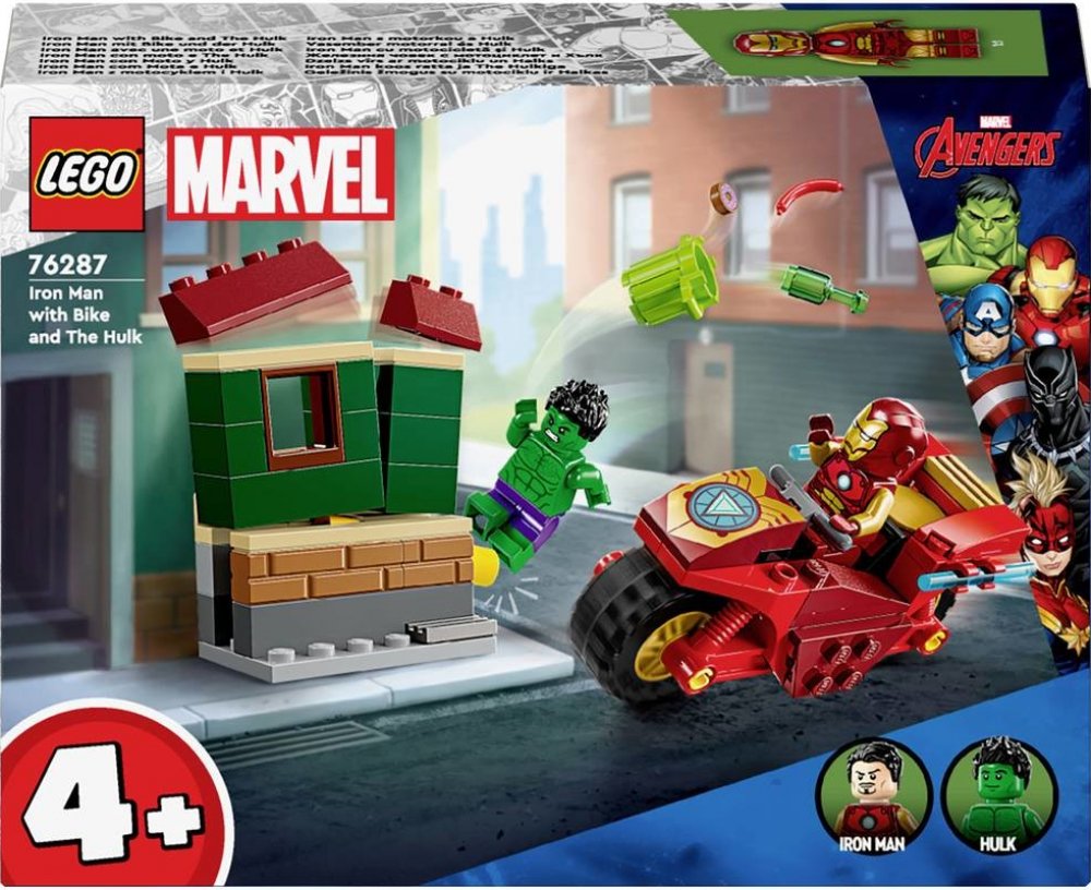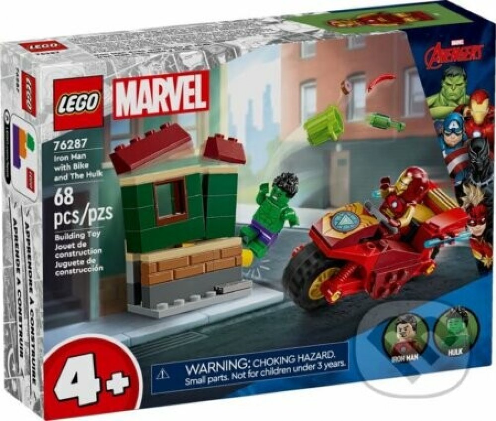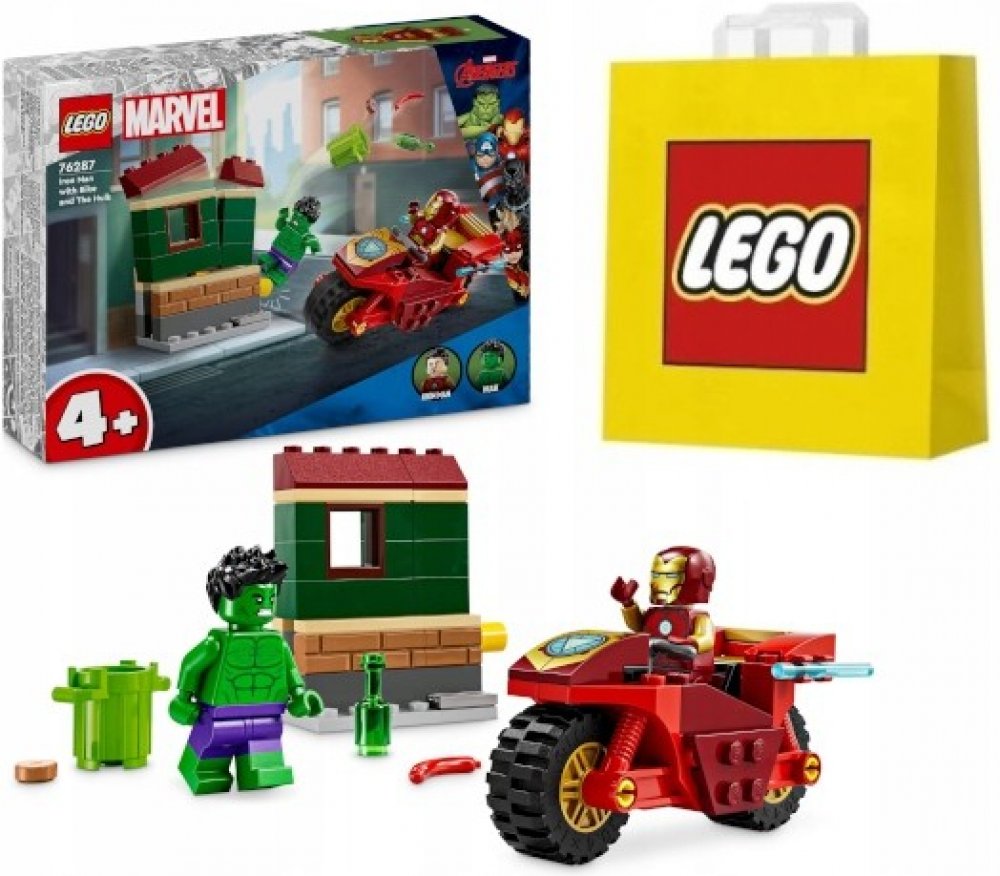 LEGO 76287 Iron Man s motorkou a Hulk - z produktové řady LEGO MARVEL. Dětské plastové kostky v krabici.