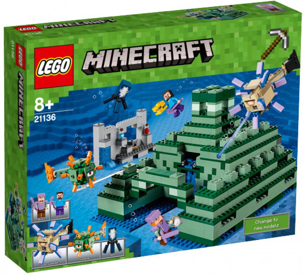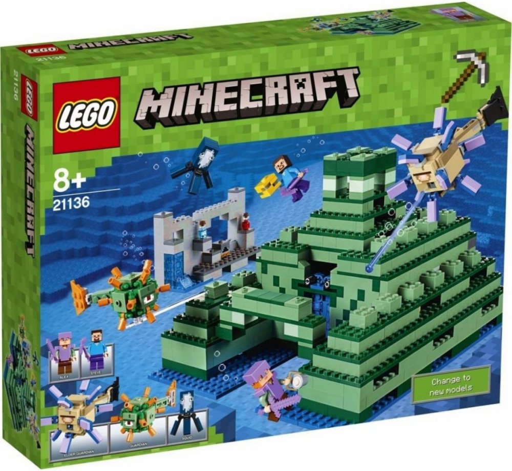 Vydej se do hlubin moří ve světě Minecraft™ a objev Památník v oceánu. Utkej se se starším strážcem s pružinovým vystřelovačem, aktivuj funkci suché mořské houby, dostaň se do památníku a najdi páku k otevření místnosti s pokladem, která je plná zlatých bloků. Užívej si tvořivá dobrodružství ze světa Minecraft™ s touto snadno přestavitelnou stavebnicí LEGO® Minecraft, ve které najdeš své oblíbené postavy a předměty. Stavebnice je navržena pro mladé fanoušky velmi úspěšné videohry. Součástí jsou minifigurky: Steve a Alex. Navíc figurky chobotnice, strážce a staršího strážce.