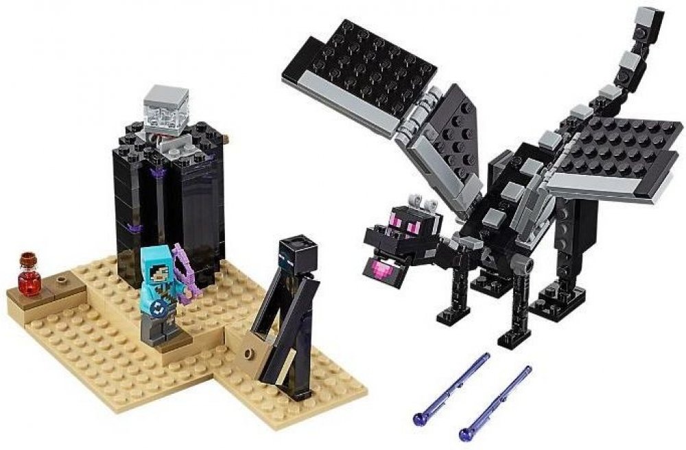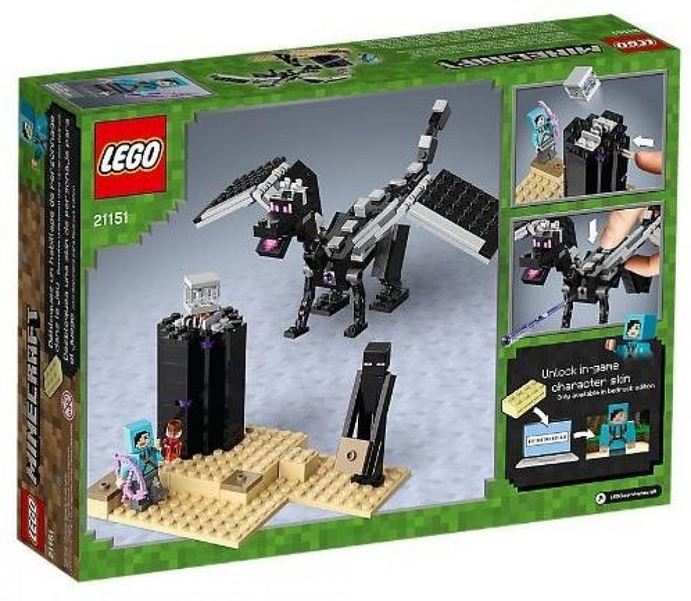 Začíná další napínavé dobrodružství ve světě Minecraft! Vydejte se do Endu, poslední dimenze v Minecraftu, kde se odehraje napínavá bitva. Vybavte svou figurku drakobijce lektvarem, endovou perlou a čarovným lukem, abyste se mohli utkat s nepřáteli. Nejprve musíte zneškodnit zákeřného endermana a následně se utkat tváří v tvář s nebezpečným drakem, který k útoku používá ohnivé střely. Pohyblivé končetiny draka a dodávané příslušenství umožní hru oživit o dramatické pózy. Stavebnici můžete upravovat podle své fantazie, případně rozšířit pomocí dalších sad z řady Lego Minecraft. Součástí je také kód pro odemknutí exkluzivního skinu ve videohře Minecraft Bedrock Edition.