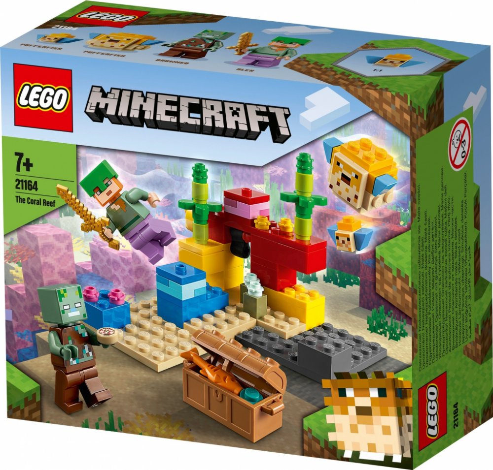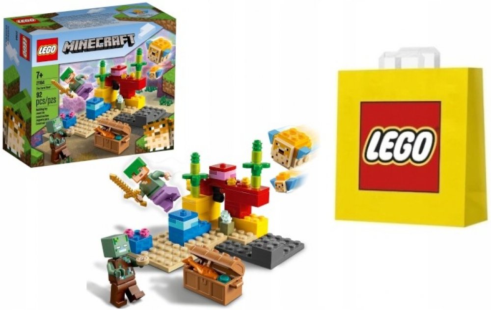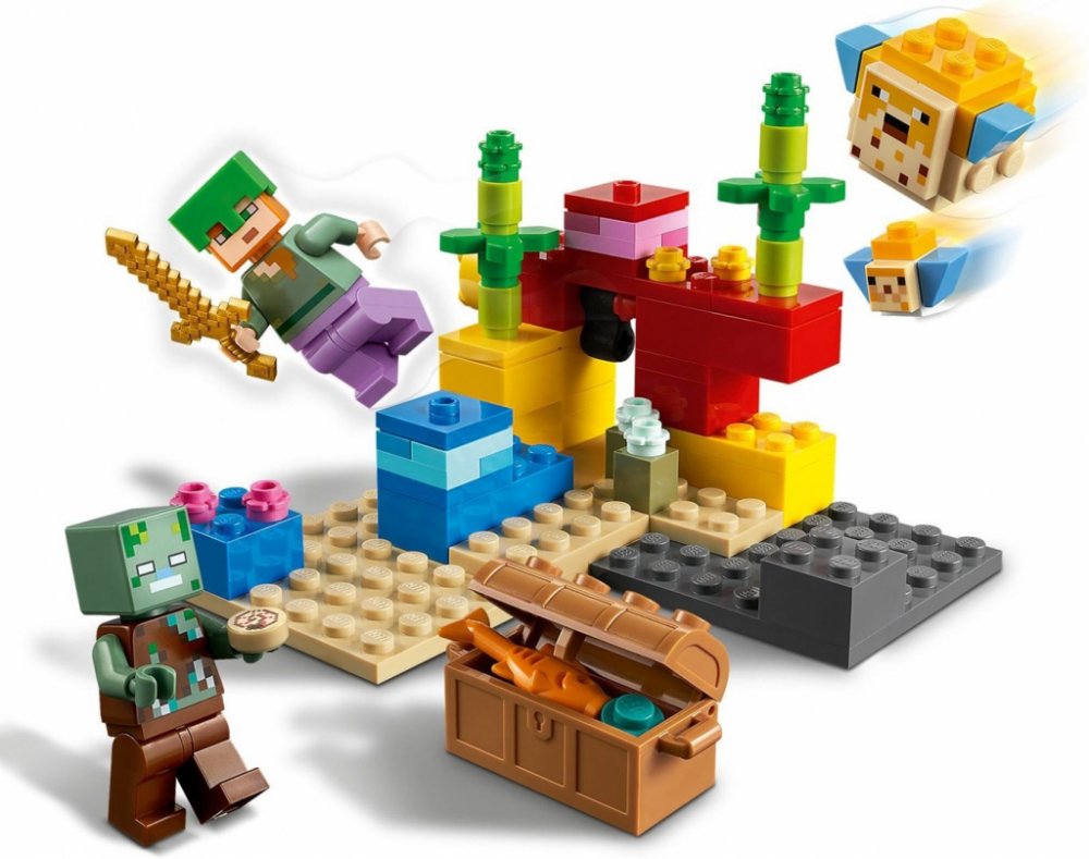 - Stavebnice Korálový útes (21164) od LEGO® Minecraft™ představuje tvořivý dárek pro hráče Minecraftu, který vdechne život podvodním dobrodružstvím pomocí LEGO kostek. Model lze přestavovat donekonečna.