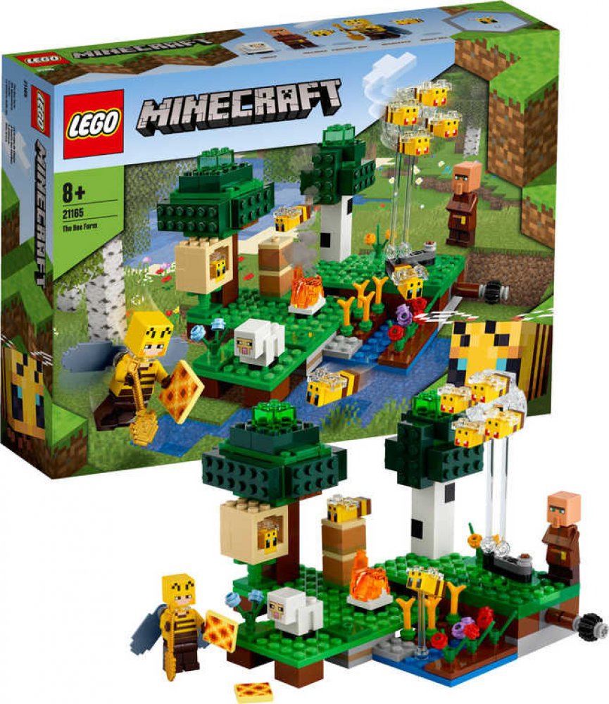 - Stavebnice Včelí farma (21165) od LEGO® Minecraft™ obsahuje postavy a jiná stvoření z on-line hry a nabízí celou řadu praktických herních možností jak pro příznivce této hry, tak pro ty, kteří s ní zatím zkušenost nemají.