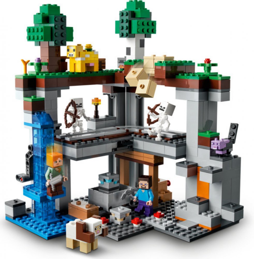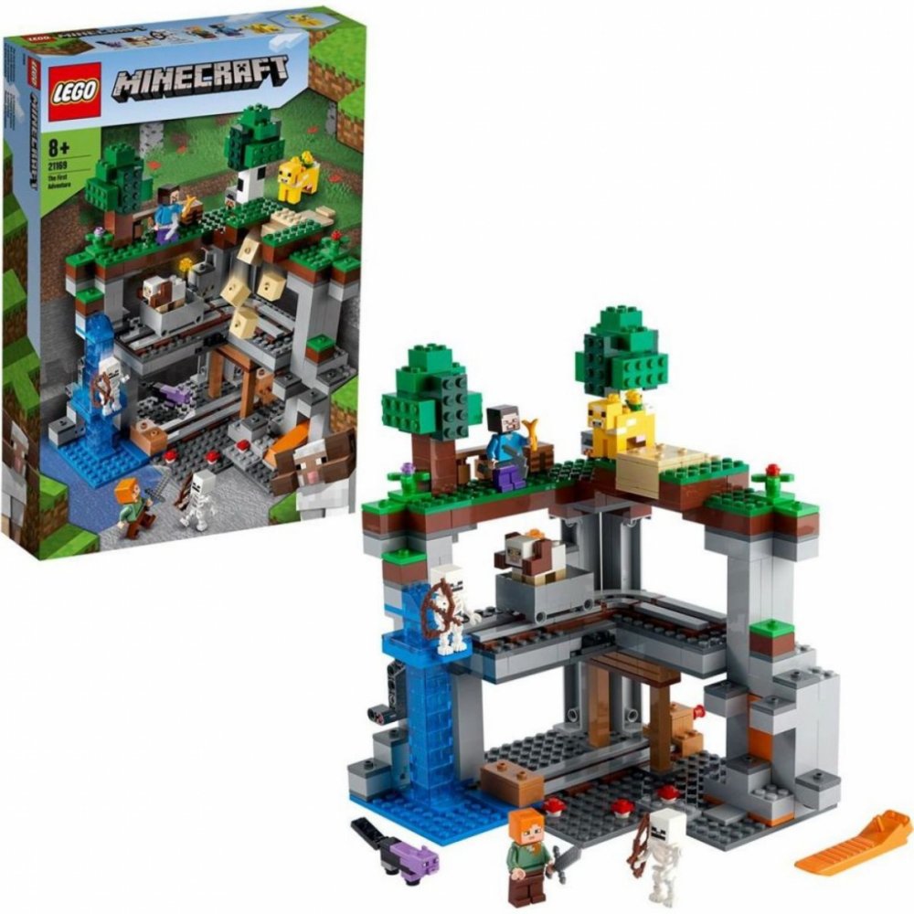 LEGO® Minecraft® 21169 První dobrodružství přináší hráčům vzrušující dobrodružství přímo ze světa Minecraft. Tento třípatrový model umožňuje prozkoumávat herní prostředí s množstvím interaktivních funkcí. S vodním výtahem, sklápěcími kolejemi a posuvnými díly mohou děti prožívat napínavé akce, které jsou známé z populární hry. Stavebnice obsahuje nejen oblíbené postavy, jako jsou Steve a Alex, ale i různé moby, jako jsou kostlivci, obarvená kočka nebo beran, což přidává hře další úroveň zábavy a kreativity.
