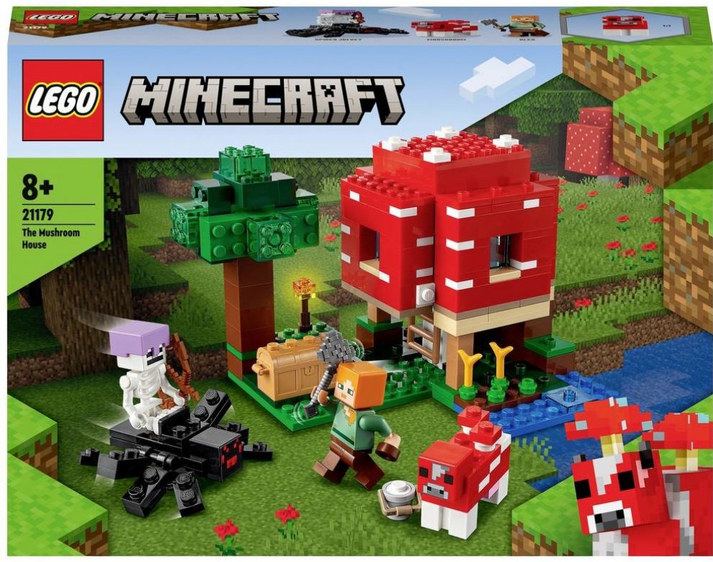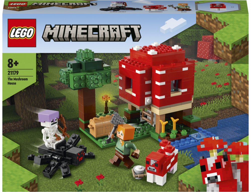 Hráči Minecraftu se mohou pustit do stavby obřího houbového domku. Zdi i střecha jsou odnímatelné pro snadný přístup k pracovnímu stolu a nábytku. Venku má Alex, hrdinka ze světa Minecraft, za úkol zachytit polévku z krávomůrky do misky. Plány se ale změní, když na scénu vtrhne kostlivý pavoučí jezdec. Model houbového domku z prostředí Minecraftu nabízí vskutku neomezené herní možnosti.