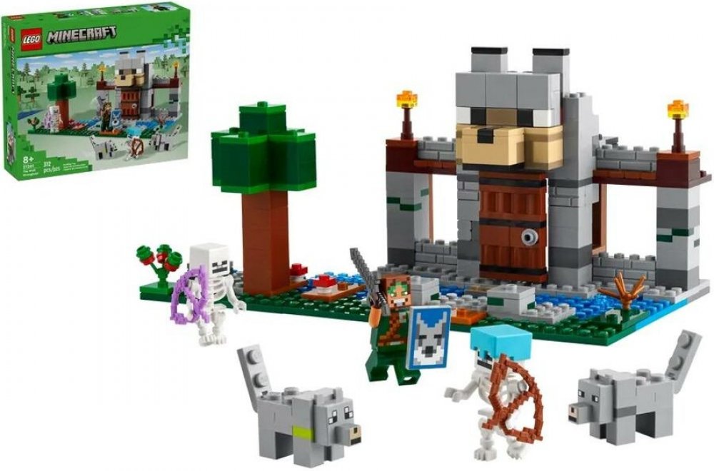 Děti postaví základnu pro zkrotitele vlků, nad jejímž vchodem je velká vlčí hlava, a poté se baví střídáním přátelských a naštvaných výrazů. Uvnitř se nachází řemeslný stůl, pec, kovadlina a poprvé v LEGO Minecraft setech i kovadlinový stůl. V truhle s příslušenstvím najdete spodní rudný ingot, ze kterého mohou děti vyrábět meče, dále se tu skrývají sladké bobule a kosti, kterými mohou zkrotit divoké vlky.