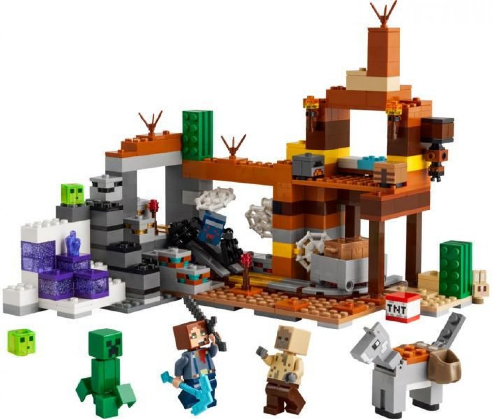 Děti se v této stavebnici vydají na dobrodružství s důlním vozíkem a oslíkovi, vybaveným velkými zavazadly na sedle, aby prozkoumaly opuštěnou důlní šachtu a naplnily důlní vozík nalezenými poklady. Na cestě se zastaví u průzkumníkovy základny, kde najdou postel a výbavu na tvoření, a budou muset odrazit útok jeskynního pavouka, Creepera, huska a dvou slizů. Tato stavebnice přináší realistické herní prvky a oblíbené moby z Minecraftu, což dětem poskytuje autentický zážitek z hraní a stavění.