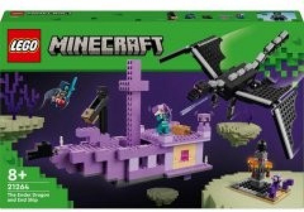 Stavebnice LEGO® Minecraft® (21264) Drak z Enderu a loď z Endu je hračka plná oblíbených postav ze světa videohry Minecraft®, dračí akce a dobrodružství na palubě lodě. Model s drakem z Minecraftu poslouží jako ideální dárek pro děti od 8 let, které mají rády stavebnice pro objevitele.