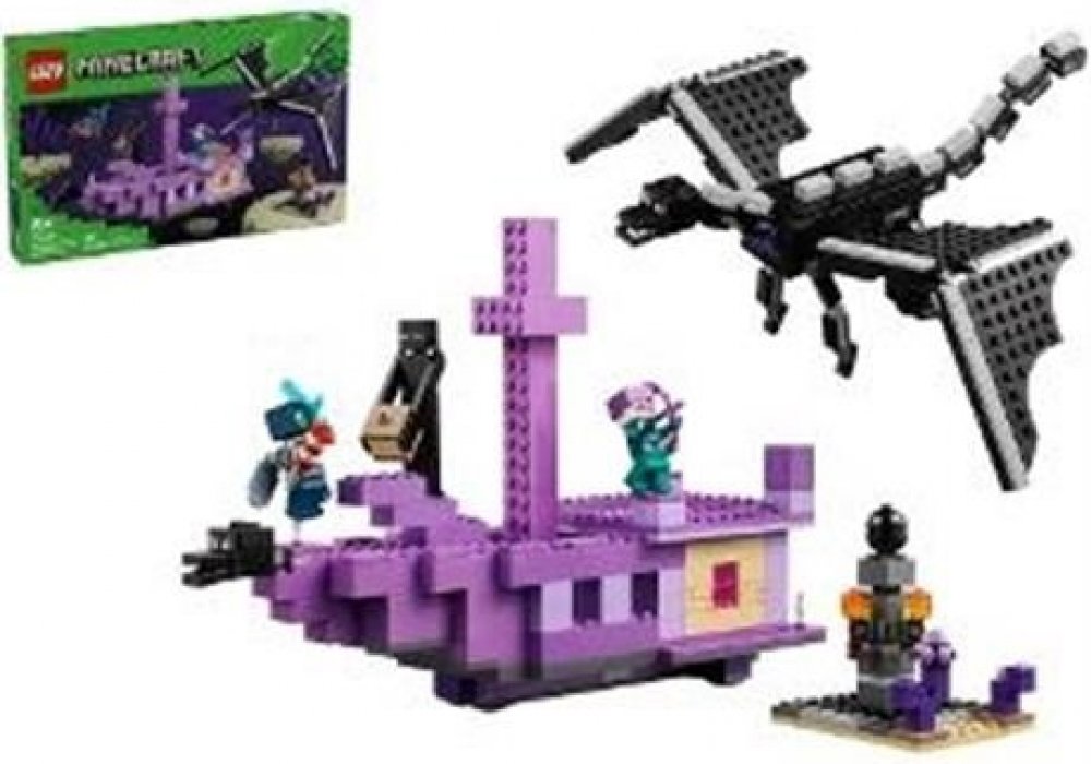 Hráči vstoupí do nebezpečného biomu End, kde se musí postavit drakovi z Enderu. Všechny končetiny této figurky s klouby jsou pohyblivé a upravitelné. Loď z Endu má plně vybavený interiér, do kterého vstoupíte skrz zvedací střechu a otevírací boční strany. Dračí hlavu z přídě lze odejmout a nosit ji jako přilbu. Uvnitř děti najdou varný stojan s lektvary zdraví. Mezi postavy z Minecraftu najdete průzkumníka Enderu s krovkami a ohňostrojovou raketou, rytíř z Enderu, Shulker a Enderman. Součástí je také cenné dračí vejce. Více digitální zábavy si stavitelé užijí s interaktivní aplikací LEGO® Builder, ve které mohou přibližovat a otáčet modely ve 3D a sledovat svůj pokrok. • Akční stavebnice s figurkami ze světa Minecraft®, dračími bitvami a dobrodružstvími na lodi
