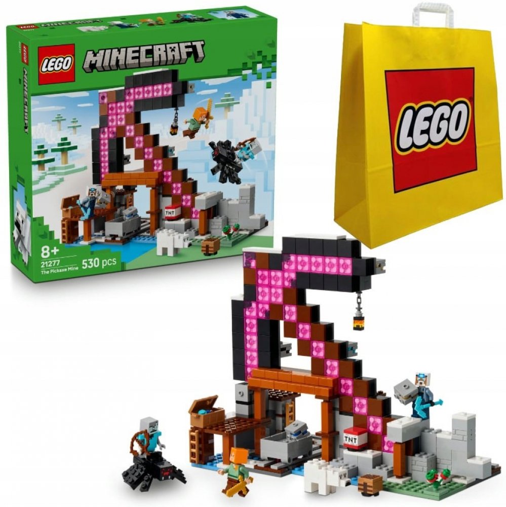 Stavebnice LEGO® Minecraft® (21277) Krumpáčový důl je plná výbušné akce. S touto kvalitní interaktivní stavebnicí krumpáče LEGO Minecraft si kluci a holky od 8 let užijí kreativní stavění a hodiny hraní. Sada představuje skvělý videoherní dárek pro milovníky Minecraftu a malé milovníky dobrodružství a vyprávění. Stavebnice obsahuje 3 minifigurky z Minecraftu: Oblíbenou postavu Alex, horníka a bludného pavoučího jezdce. Na povrchu dolu najdete také figurku mláděte ledního medvěda. Děti vytěží rudu z dolu, naloží ji do důlního vozíku a převezou ji po dráze k truhle, kde ji uloží. Vozík můžou naplnit TNT a vyhodit stranu modelu do povětří. A až si děti dohrají, stavebnice ve tvaru krumpáče LEGO Minecraft se stane úchvatným výstavním kouskem. Pro ještě větší digitální zábavu můžou stavitelé přibližovat a otáčet modely ve 3D a sledovat pokrok pomocí intuitivní aplikace LEGO Builder. Stavebnice obsahuje 530 dílků.