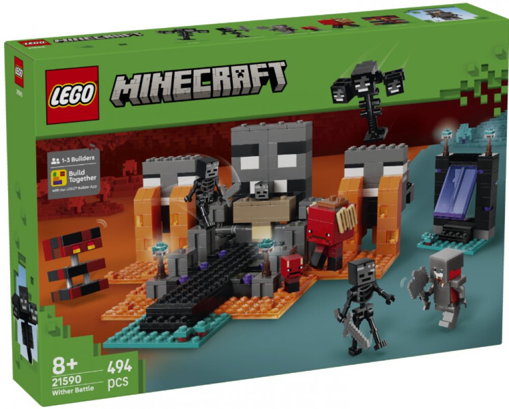 LEGO® Minecraft 8 let 494 ks bitvy Minecraft pro kluky a holky LEGO® 2026 S pomocí Půl dne 1 model 24 × 22 × 10 cm Crimson Warrior, 2× wither skeletons, Wither