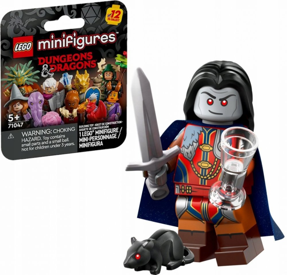 Minifigurka Strahd von Zarovicz ze série Dungeons & Dragons®. Děti od 5 let se mohou těšit na napínavá fantasy dobrodružství s 1 z 12 sběratelských figurek ze sady LEGO® Minifigurky (71047) Dungeons & Dragons®, které se skrývají v baleních s překvapením. Tyto postavy ze slavné hry si můžete přidat do sbírky, hrdě je vystavit nebo se nechat inspirovat k hraní akčních bitev a vydat se na výpravy. V každém balení najdete 1 z 12 minifigurek ze světa Dungeons & Dragons: Čarodějuku tiefling, elfského zpěváka, půlčího druida, trpasličího barbara, drakorozeného rytíře, strážce Aarakokra, získejte průvodce, podmanění mysli, paní hrůzy, Strahd von Zarowicze, Tashu královna čarodějnic a Zas Tam. Děti se se všemi 12 fantasy minifigurkami LEGO vydají vstříc zábavným příběhům. Minifigurky jsou dodávány v zapečetěné krabičce s překvapením s alespoň 1 autentickým doplňkem a sběratelským informačním letáčkem. Malí stavitelé si s tímto jedinečným dárkem na motivy hry Dungeons & Dragons užijí vyprávění úchvatných příběhů a nespočet hodin hraní, které si budou vychutnávat samy nebo s kamarády. Sběratelské hračky Dungeons & Dragons® pro děti – Kluci a holky od 5 let si užijí velkolepá dobrodružství s minifigurkami LEGO® Dungeons & Dragons; v každé tajemné krabičce najdou 1 minifigurku 1 z 12 sběratelských figurek – Fanoušci LEGO® v každém tajemném balení najdou 1 z 12 minifigurek Dungeons & Dragons®, které přidají do své sbírky, včetně čarodějky tiefling, půlčího druida a paní hrůzy Autentické doplňky – Každá postava má minimálně 1 unikátní doplněk, včetně trpasličího barbara se sekerou a pochodní a získejte průvodce s dýkou a magickou holí Fantastické dobrodružné hračky pro děti – Sběratelské minifigurky LEGO® z limitované edice podněcují dětskou představivost a umožňují jim vstoupit do světa fantazie a zažít strhující dobrodružství Dárek ze světa Dungeons & Dragons® – Tyto sběratelské minifigurky představují skvělý dárek pro děti, které milují fantasy akci Hodiny zábavy s kostkami LEGO® – Fantasy minifigurky si můžete přidat do sbírky, vystavit nebo se nechat inspirovat legendárními příběhy ze světa Dungeons & Dragons®