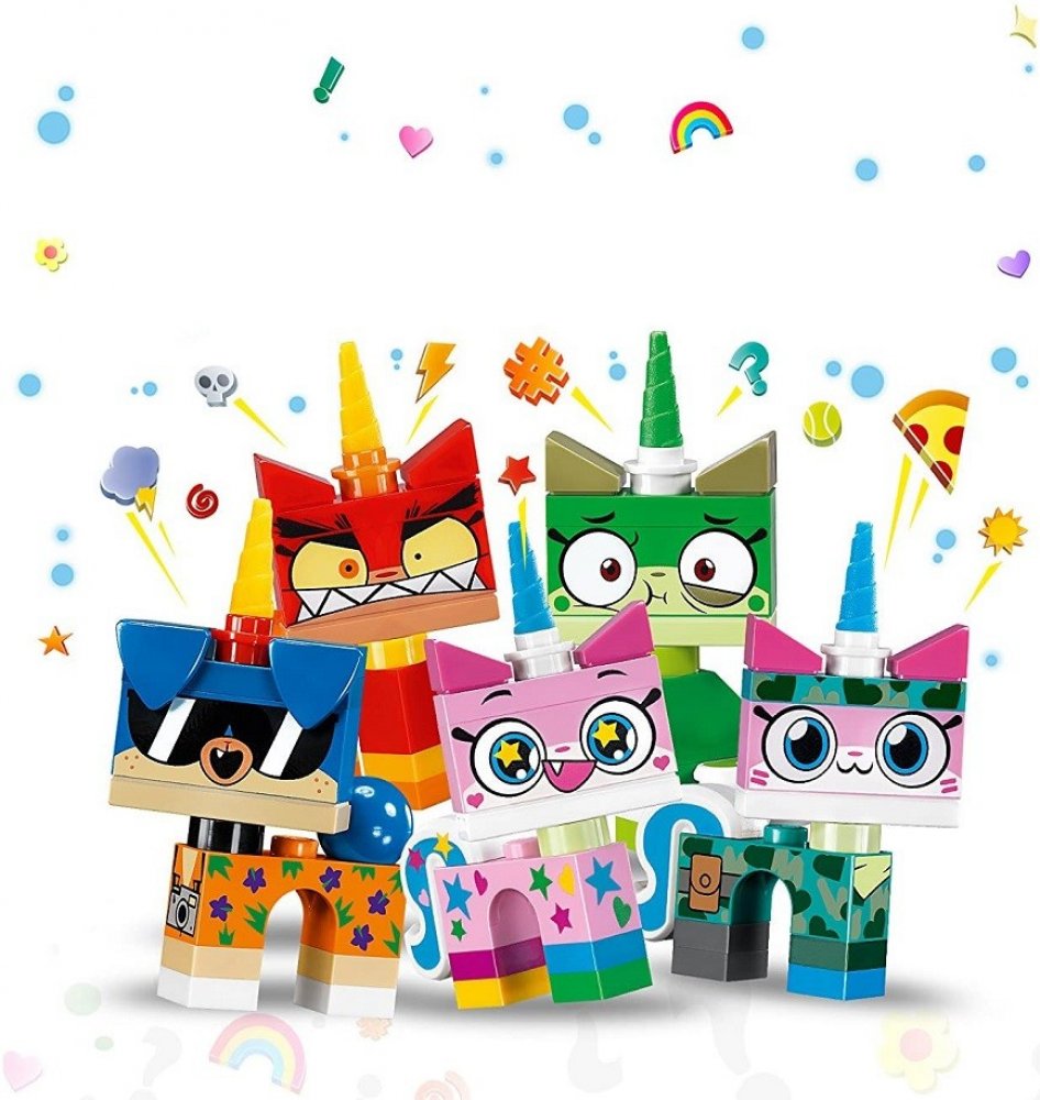 - Postav si některou z 12 LEGO® Unikitty!™ sběratelských figurek z limitované edice a přehrávej si oblíbené scény z televizního seriálu nebo si vytvářej vlastní veselé barevné příběhy!