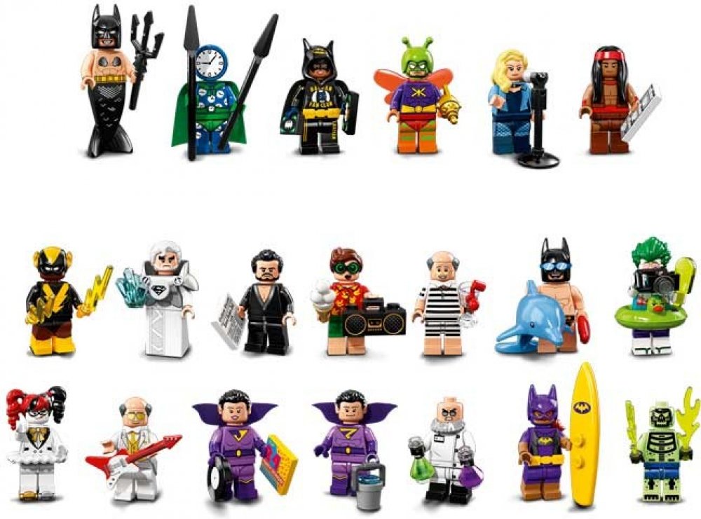 Každá minifigurka má vlastní speciální příslušenství, stojánek a sběratelský letáček. Od ledna 2018 je nově podstavec s natištěným Batmanovým™ logem. Obsahem této série na téma Batman jsou tyto minifigurky: Harley Quinn Alfred Pennyworth Clock King Hugo Strange Batman Mořská panna Batman Plavec Joker na dovolené Robin na dovolené Batgirl na dovolené Alfred na dovolené Bat Merch Batgirl Killer Moth...
