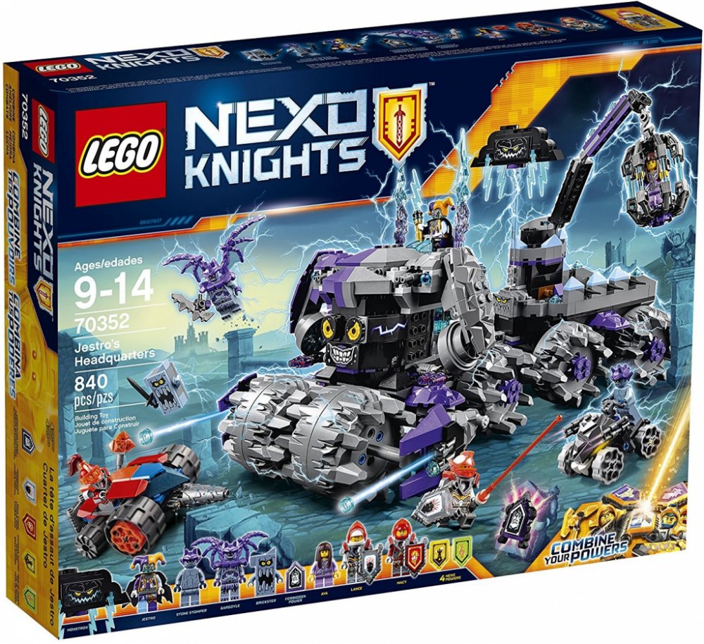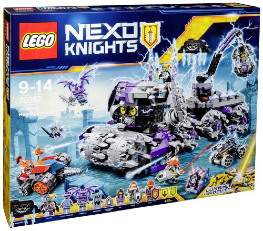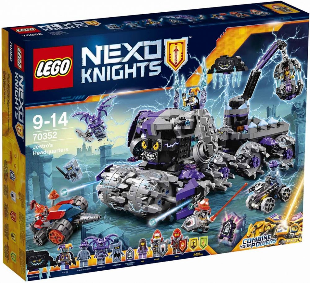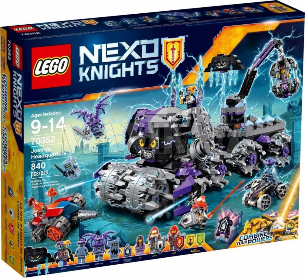 Zaútoč na Jestrovo mobilní ústředí (H.E.A.D) s Macyiným vozidlem Underminer a bojuj s Jestrovým létajícím kloboukem Hatattacka a s kamennými vozidly s koly! Sjednoť hrdiny LEGO® NEXO KNIGHTS™ a kombinuj jejich NEXO Síly, abys zastavil Jestra ještě předtím, než najde zakázané Síly - poté zachraň Avu z houpající se klece! Součástí jsou štíty k naskenování se čtyřmi NEXO Silami: Nindž...