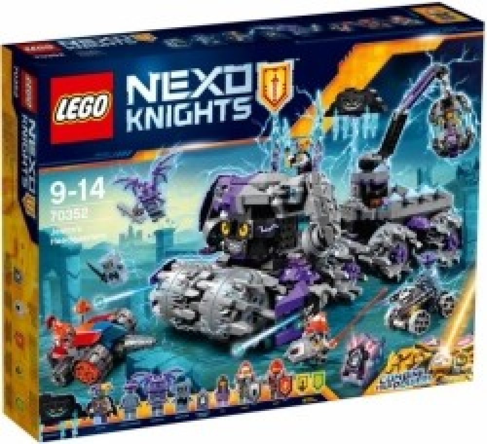 LEGO® Nexo Knights 9 let 840 ks vozidla Nexo Knights pro kluky a holky LEGO® 2017 S pomocí Celý víkend 1 model 33 × 21 × 20 cm Jestro, Ava, Macy, Lance, Chrlič, Kamenný voják šedá, fialová, černá, červená 6 ks