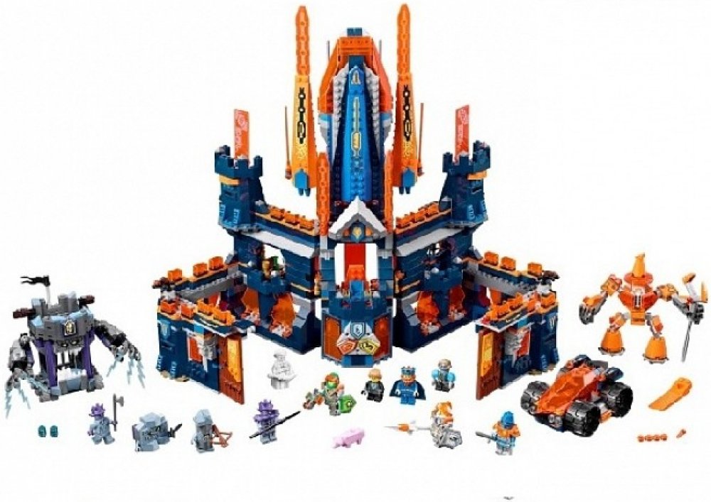 Prozkoumej úžasnou sadu 2 v 1 Hrad Knighton a ochraň krále! Nech rozestoupit hlavní bránu, rozlož stěny hradu a nech vyjet Robinův vůz se dvěma vystřelovači a Merlokem 2.0 v jeho robotickém obleku Mechlok s kouzelnickým kloboukem. Střetni se s nepřítelem a vyhni se zajetí ve vězení z valícího se kamene. Tato akcí nabitá sada LEGO® NEXO KNIGHTS™ dále obsahuje věž sestavitelnou z odnímatelného transportéru Hlučných raket, obytnou část se dvěma ložnicemi, jídelnou, zbrojnicí a velícím centrem - pro nekonečné hodiny obléhání a zábavu při hraní. Součástí je šest skenovatelných štítů a osm minifigurek.