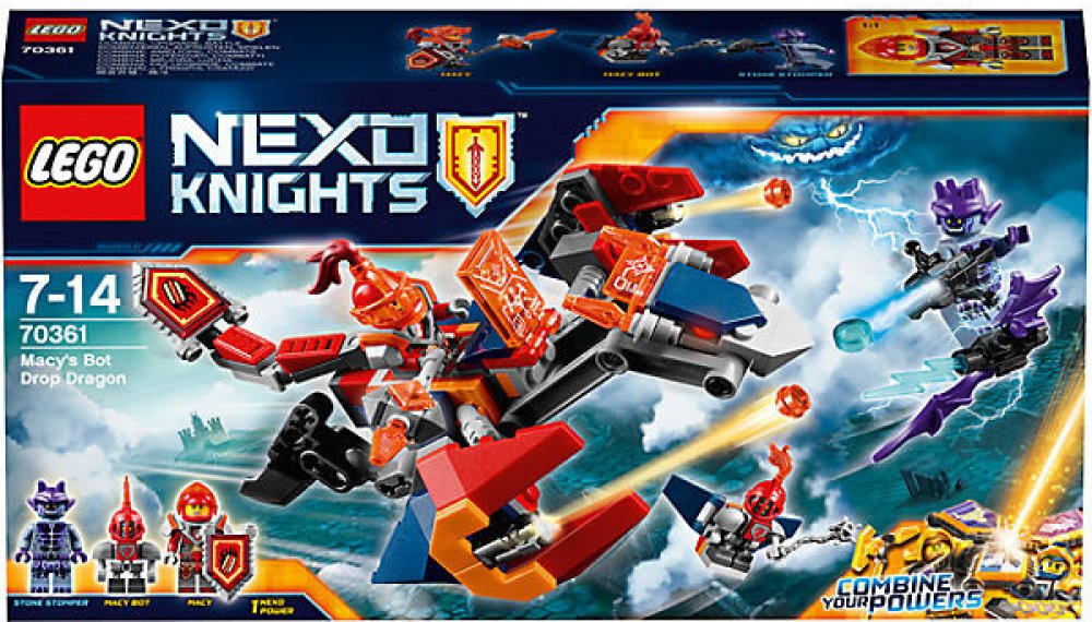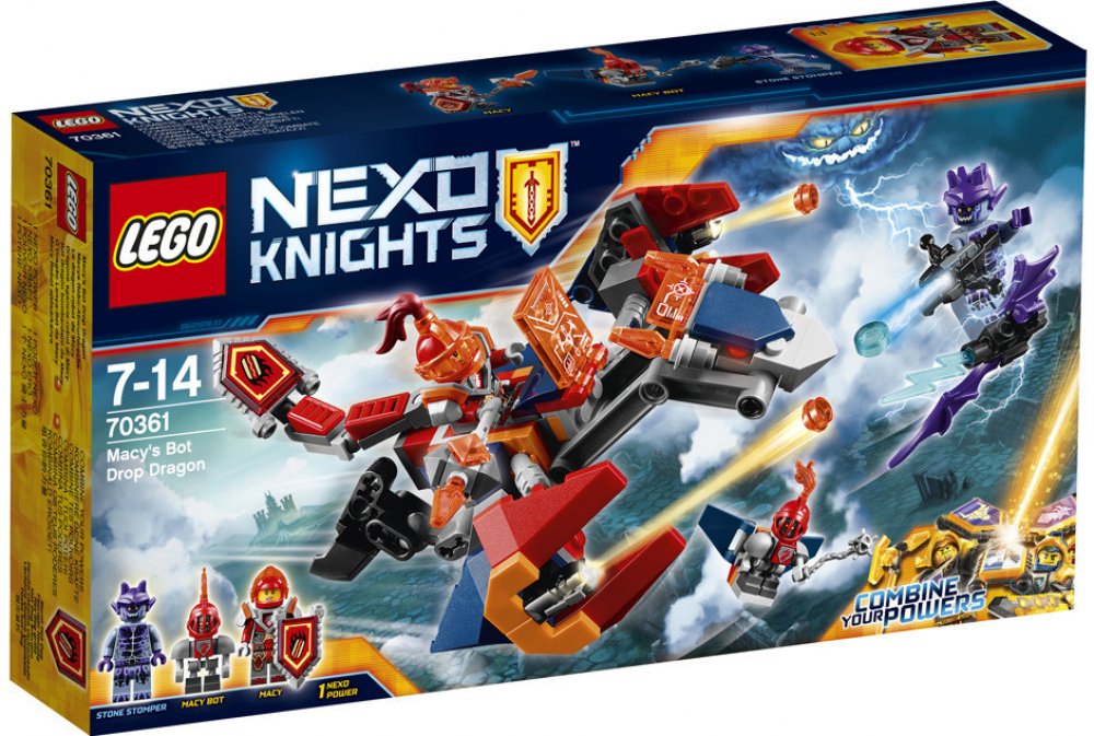 - Zkombinuj draka s bitevním oblekem LEGO® NEXO KNIGHTS™ a vytvoř tak dokonalé bojové spojení.