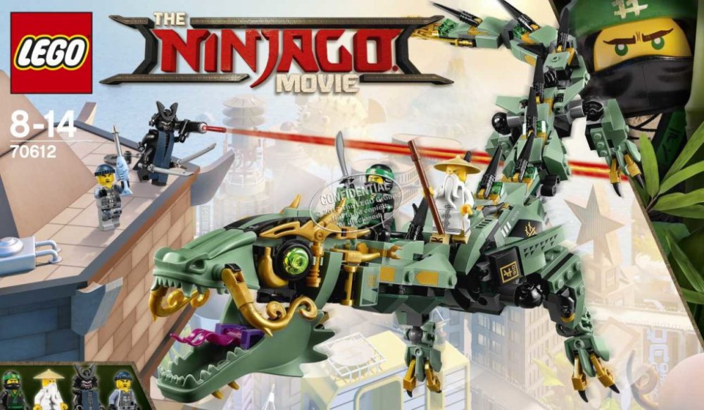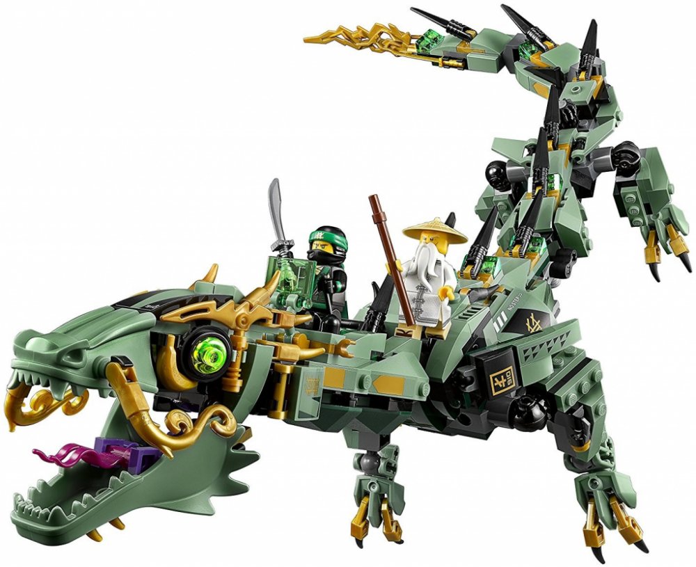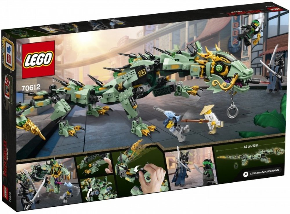 - Robotický drak Zeleného nindži obsahuje kokpit pro minifigurku, klapající kloubové čelisti, plně pohyblivé tělo, kolečkem ovladatelný šlehající ocas s bodci, dva vystřelovače na nohou, dvě skryté vysunovací raketové trysky na předních nohou a zlatavé detaily.
