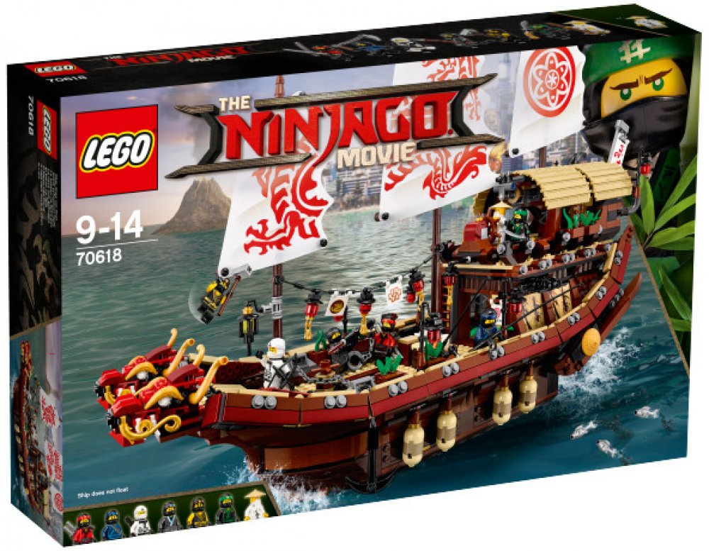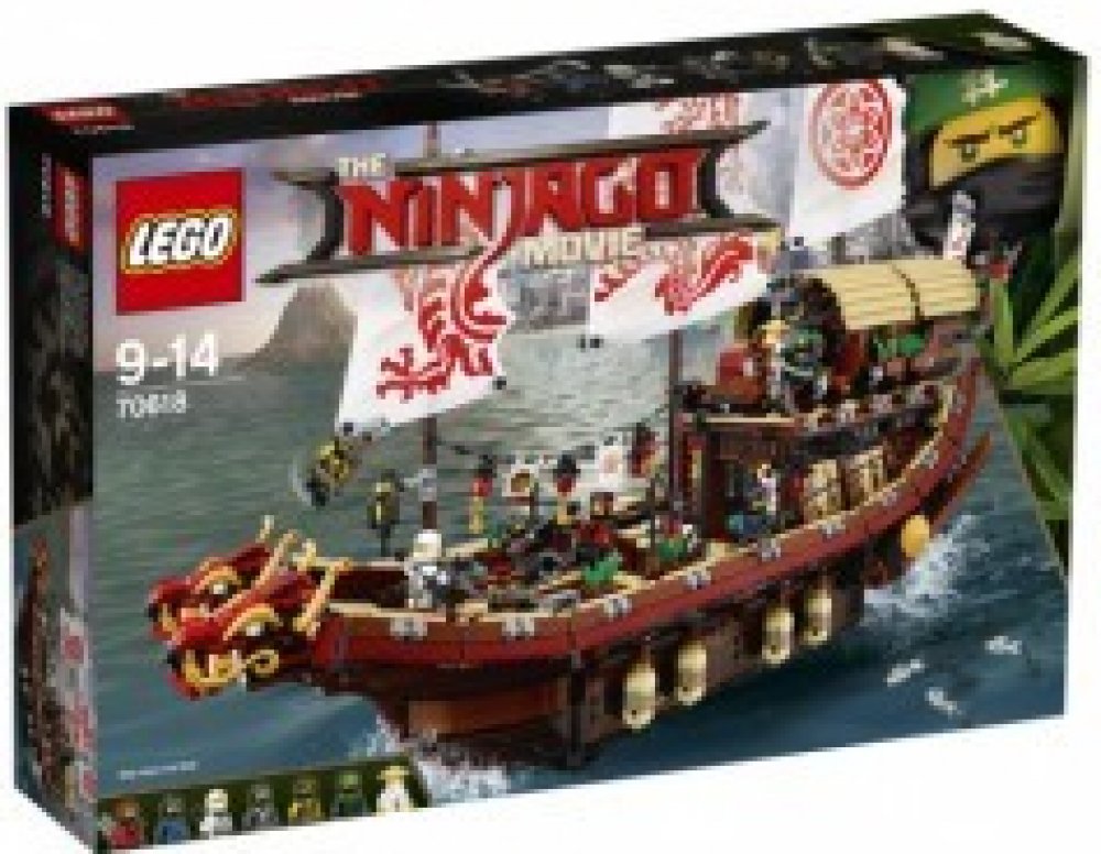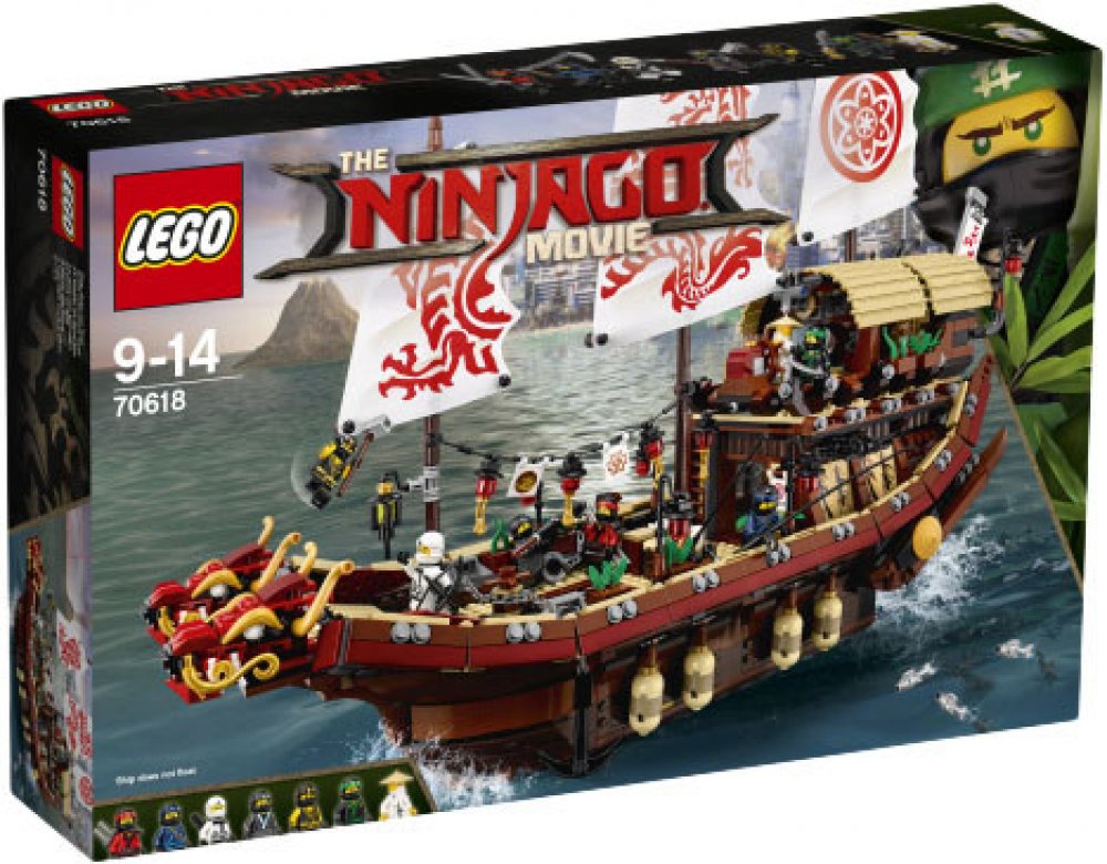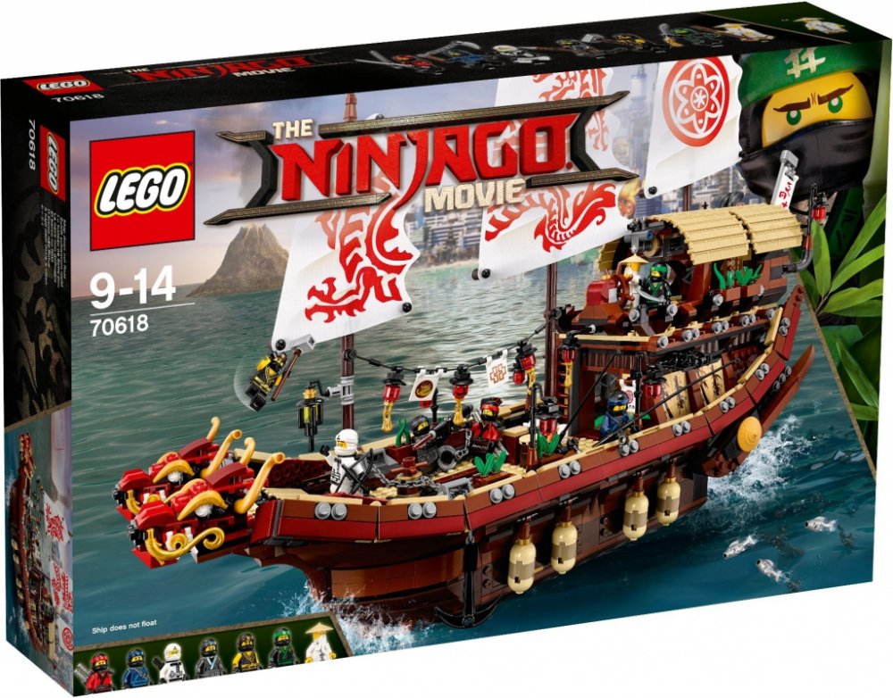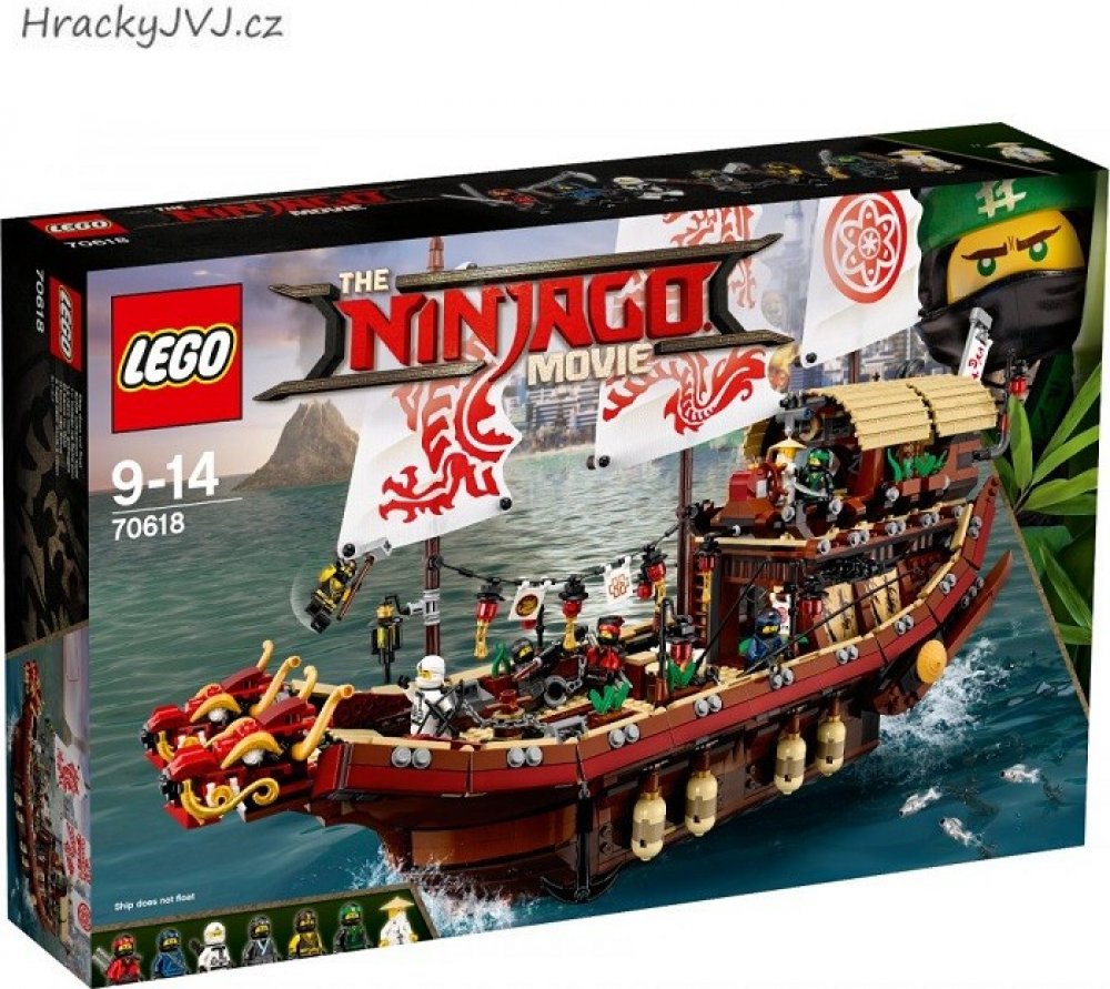 Postav si obrovskou nindžovskou výcvikovou základnu mistra Wu, jménem Odměna osudu. Tento vysoce detailní model, inspirovaný filmem LEGO® NINJAGO® FILM, se skládá ze tří modulárních sekcí a obsahuje dvojitou hlavu draka na přídi, zdobené plachty, navíjecí kotvy, prostor dojo - pro výcvik nindžů, příslušenství a ložnici mistra Wu v trupu lodi. Tento úžasný model dále obsahuje různé ukryté zbraně, včetně nejmocnější zbraně - laserové hole, navíc 7 minifigurek s různými zbraněmi - pro ještě lepší hrací zážitek plný akce a vzrušení.