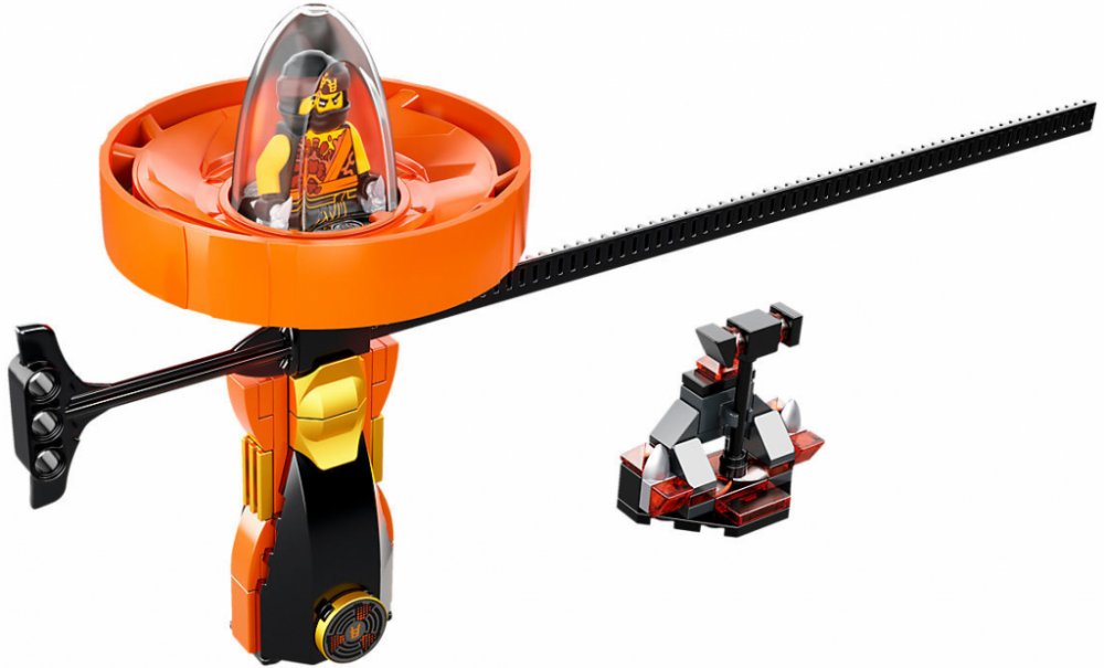 - Obsahuje Spinjitzu spinner se skládacím držátkem z kostek LEGO®, kapsli pro minifigurku, roztáčecí lanko, stojan na zbraně s kladivem a 2 Coleovy hvězdice.