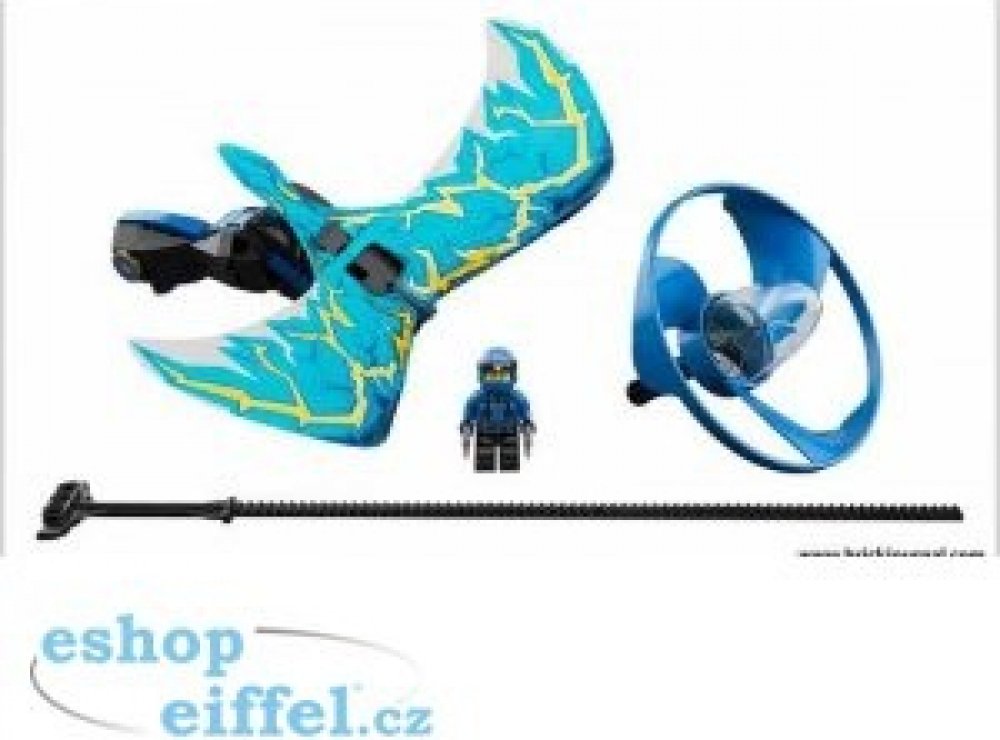 - Obsahuje sestavitelnou odpalovací rukojeť z LEGO® kostek, kapsli pro minifigurku, rotor, dračí křídla, natahovací lanko a kulatou LEGO destičku 2x2 s logem Jaye.