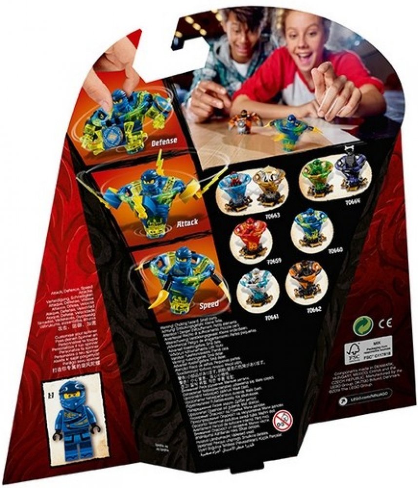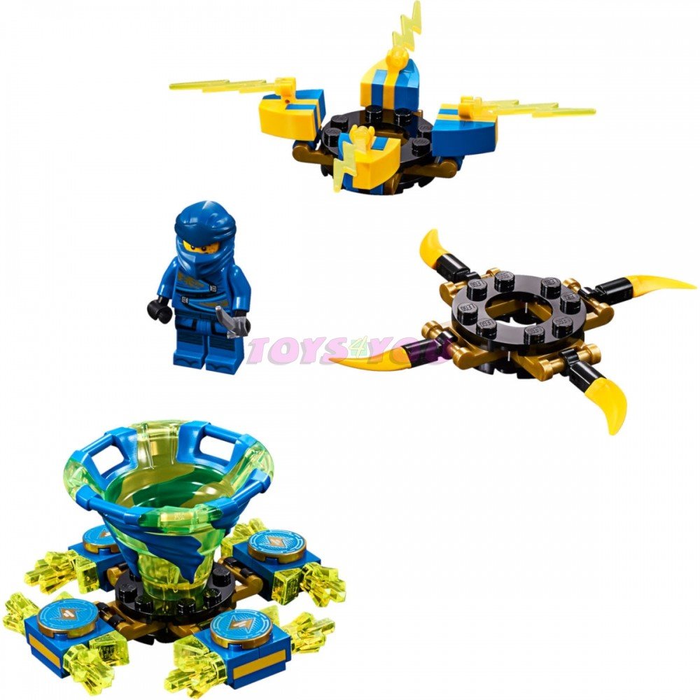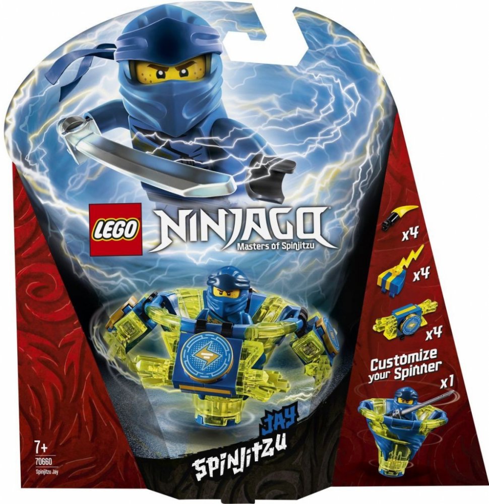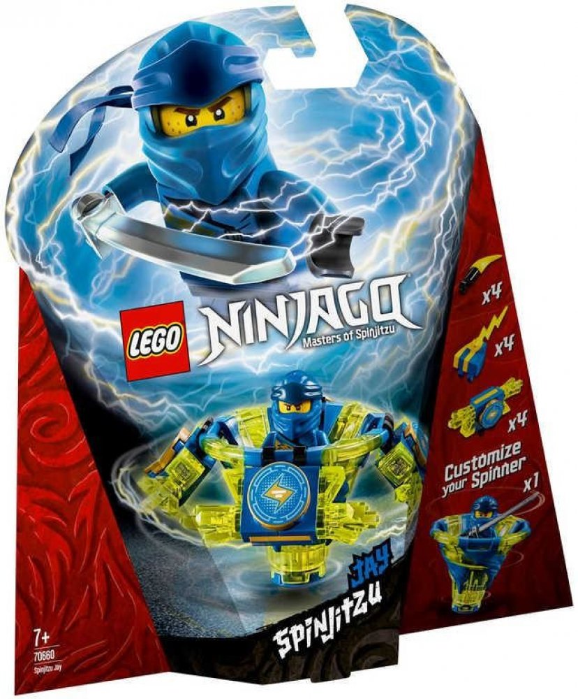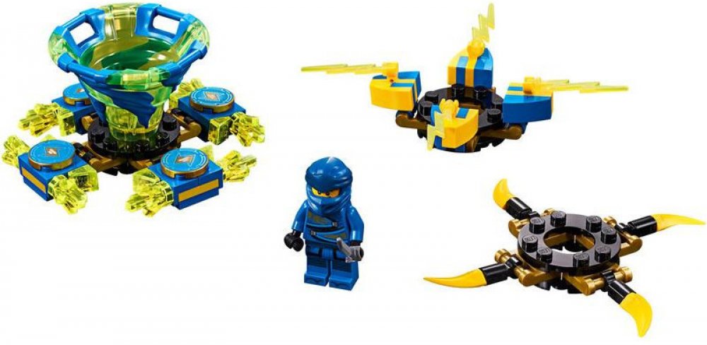 - Sada LEGO® NINJAGO® Spinjitzu Jay obsahuje bleskový spinner – novinku chystanou na leden 2019 – a 3 přídavné prvky pro útočný, obranný a rychlostní režim.