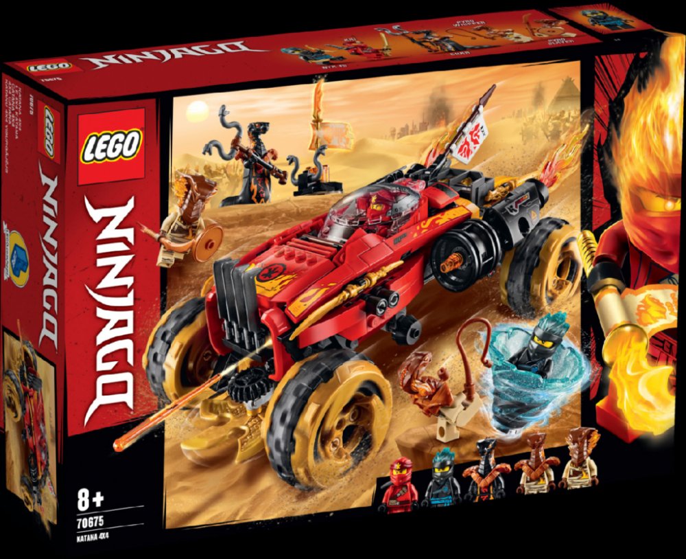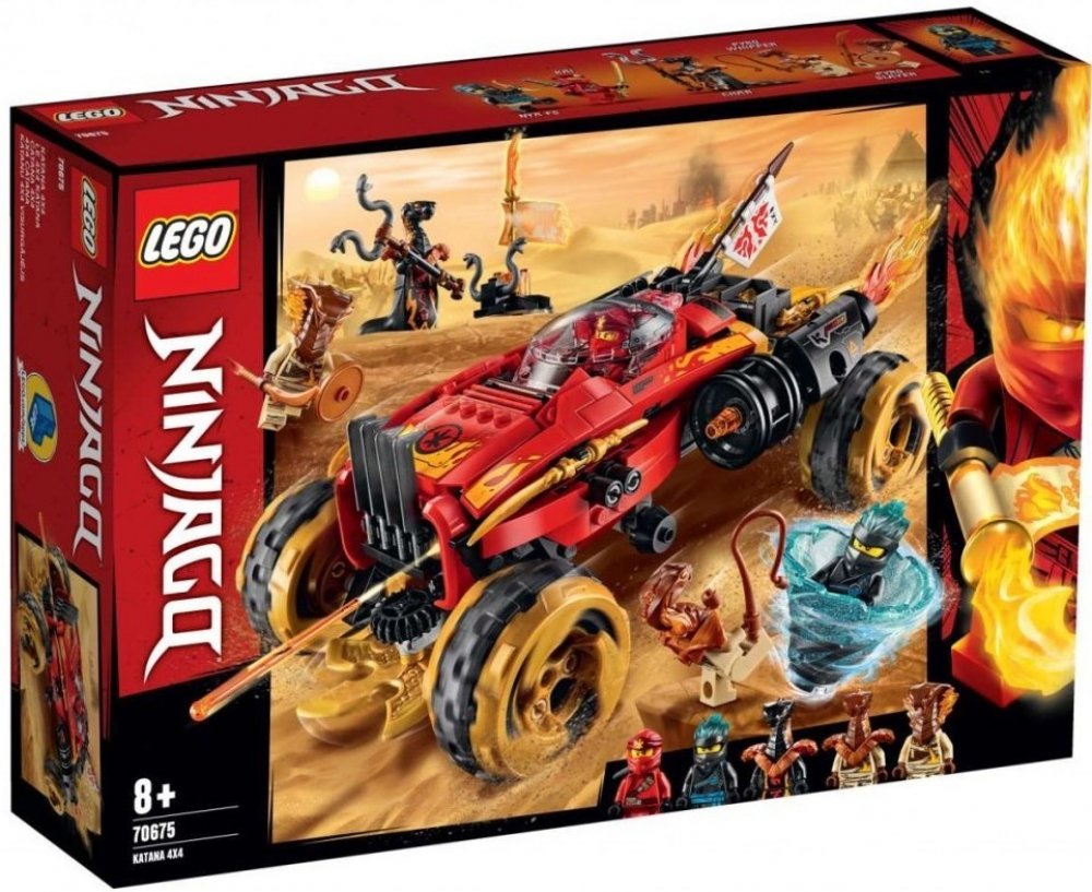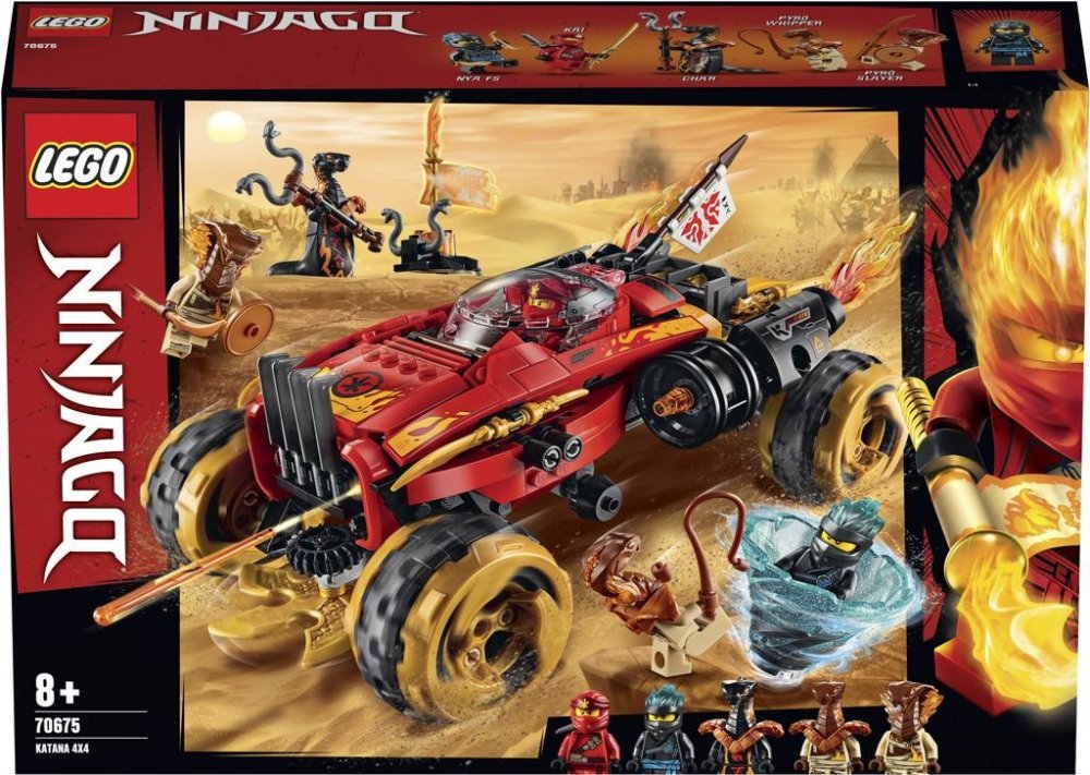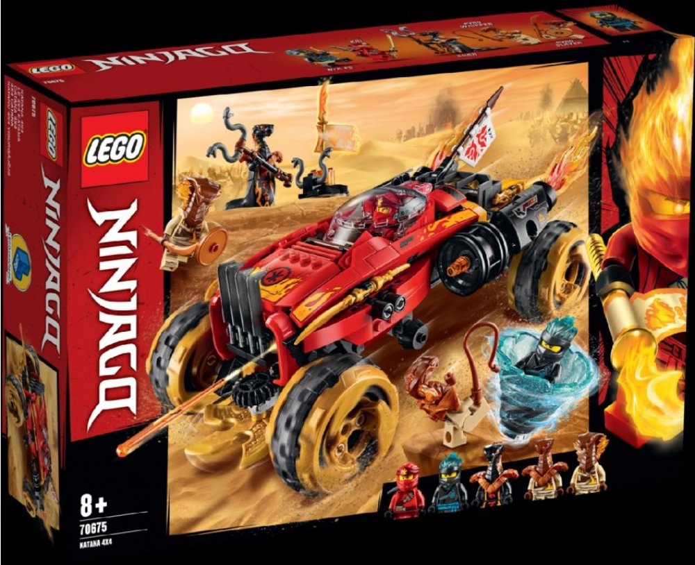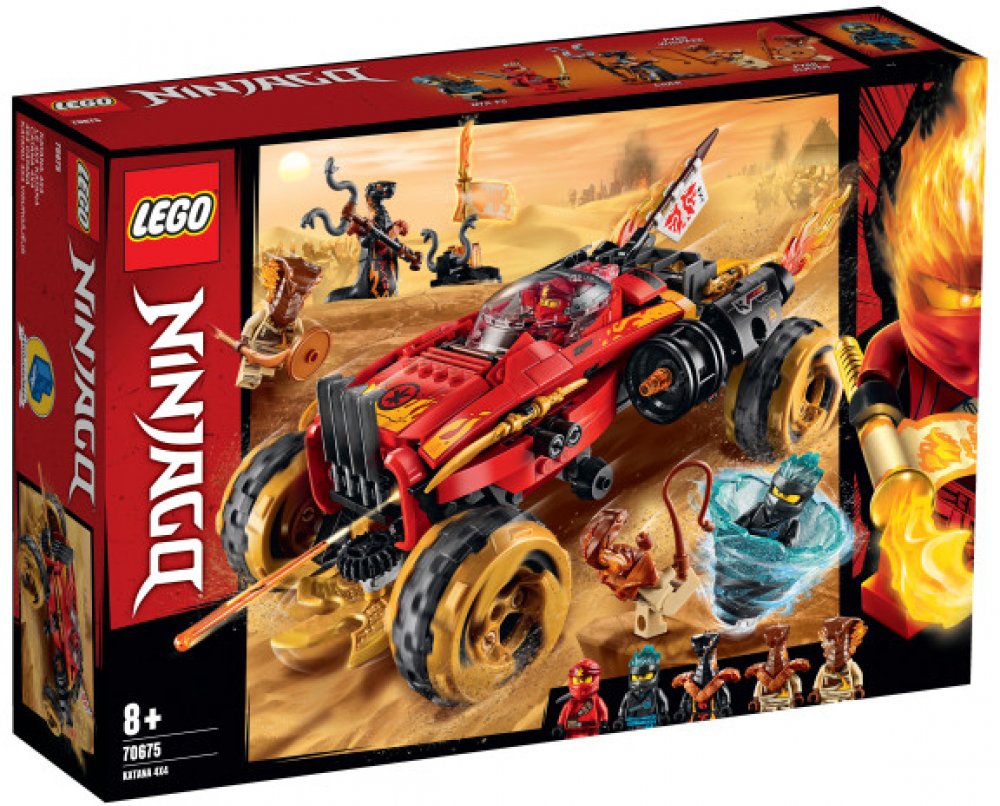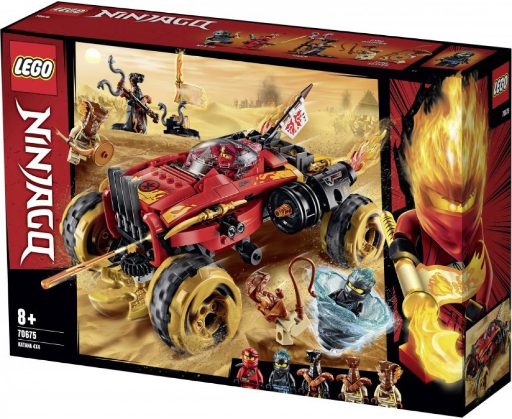 - Katana 4x4 obsahuje otevírací kokpit pro minifigurku, rotující hvězdicové čepele s funkcí beranidla, 2 pružinové vystřelovače, otevírací přihrádku na zbraně s různými zlatými zbraněmi, kola se zlatými ráfky, turbo motory s plameny sršícími z výfuku, nindža vlajku a ozdobné zbraně.