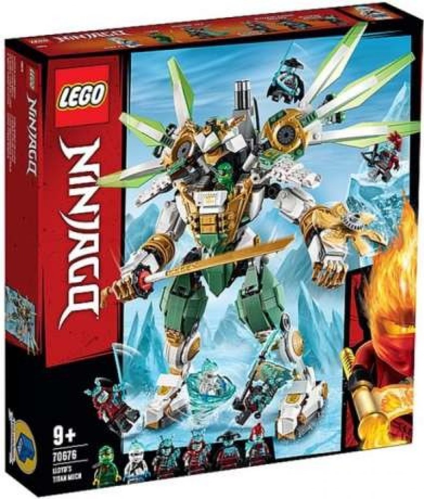 - Lloydův titánský robot obsahuje kokpit pro minifigurku, pohyblivé paže a nohy, chňapající ruce, rotující hvězdicovou čepel/štít, obří katanu a odpojitelný letoun s místem pro minifigurku, nastavitelnými křídly a 2 pružinovými vystřelovači.