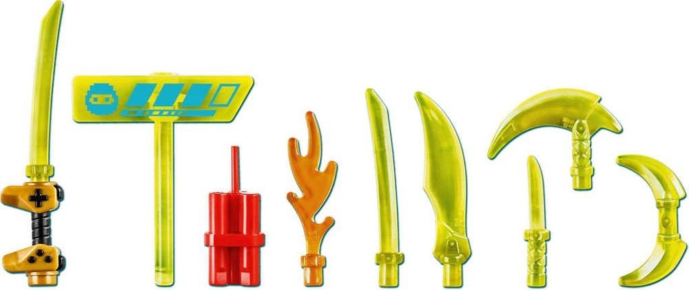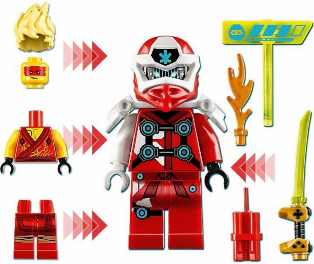 - Nindžovská stavebnice obsahuje herní automat a 2 figurky z videohry – digitální verzi Kaie od NINJAGO® a Kaiovo druhé já – které lze vybavit nejrůznějšími zbraněmi. Děti mohou zapojit svou kreativitu a přehrávat si strhující příběhy ze světa Prime Empire.