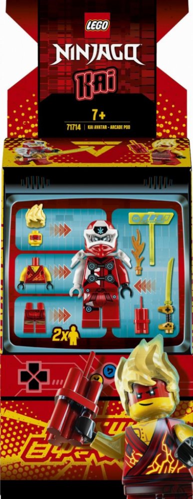 - NINJAGO® sada s miniaturou herního automatu, minifigurkou digitální verze Kaie a exkluzivní minifigurkou Kaiova druhého já pro přehrávání strhujících scén ze světa Prime Empire. Perfektní stavebnice pro oddané fanoušky seriálu NINJAGO a děti s dobrodružnou povahou.