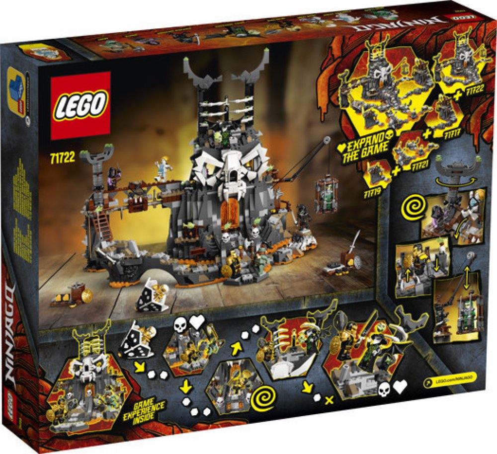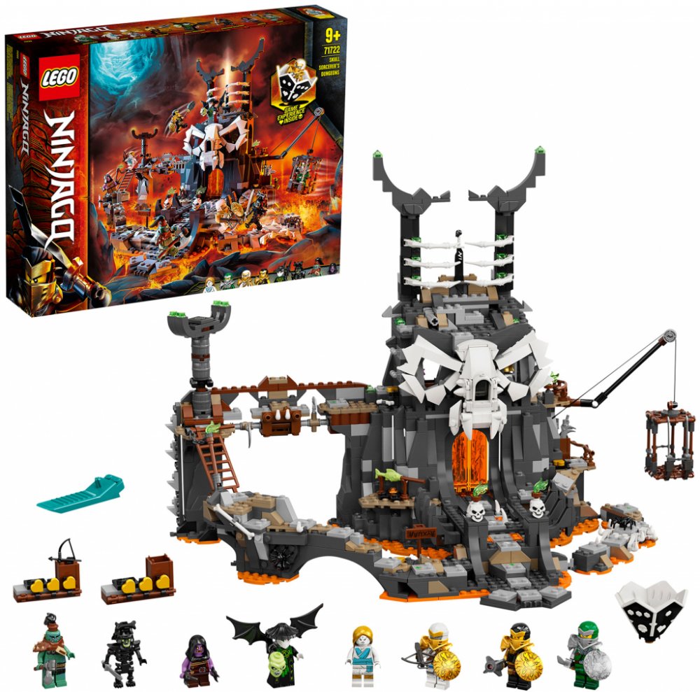 - Stavebnice LEGO® NINJAGO® Kobky Čaroděje lebek (71722) se může pochlubit 8 figurkami, se kterými děti prožijí vzrušující dobrodružství v NINJAGO® kobce. Spinner kostek zaručí ještě více zábavy a napětí při hraní LEGO® stolní hry.