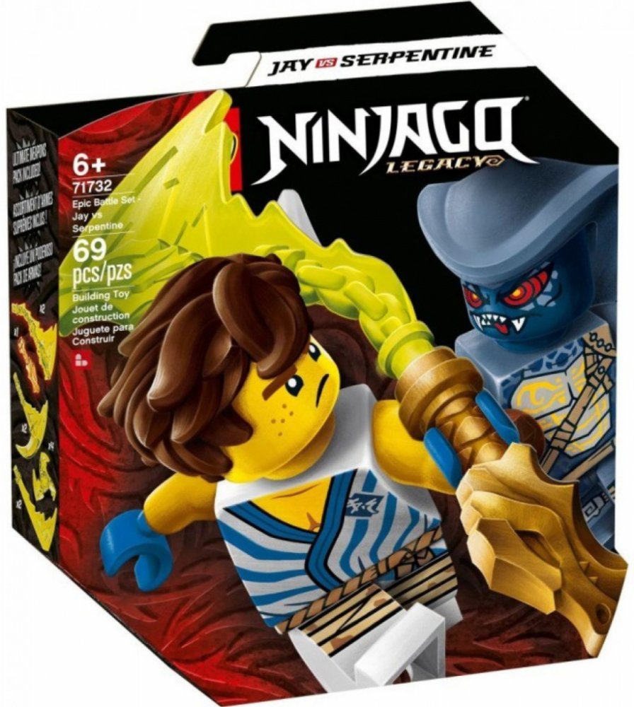 - Sada Epický souboj - Jay vs. Serpentine (71732) od LEGO® NINJAGO® dětem přináší vše, co potřebují k přehrávání neúnavných duelů mezi hrdinným nindžou Jayem a proradným padouchem Serpentinem.