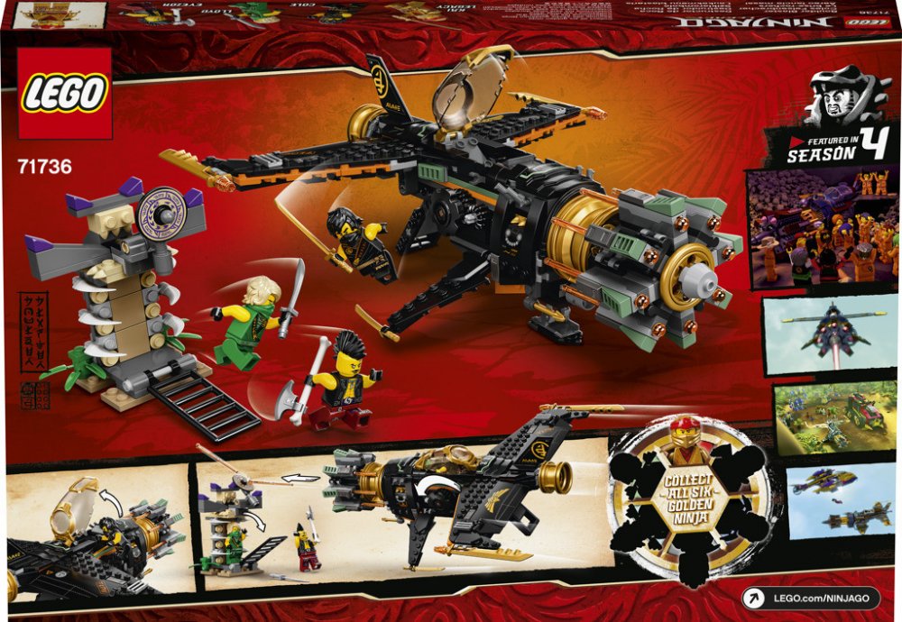 Sada LEGO® NINJAGO® 71736 Odstřelovač balvanů je novou a modernější verzí původní stavebnice s parádním vyzbrojeným letounem a nindža vězením, se kterou na děti čeká spousta akce a dobrodružství.