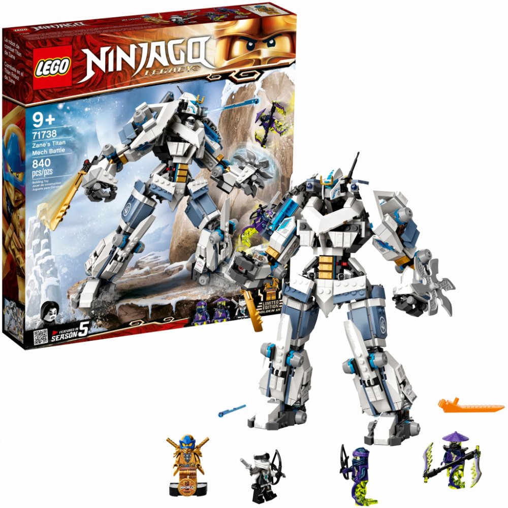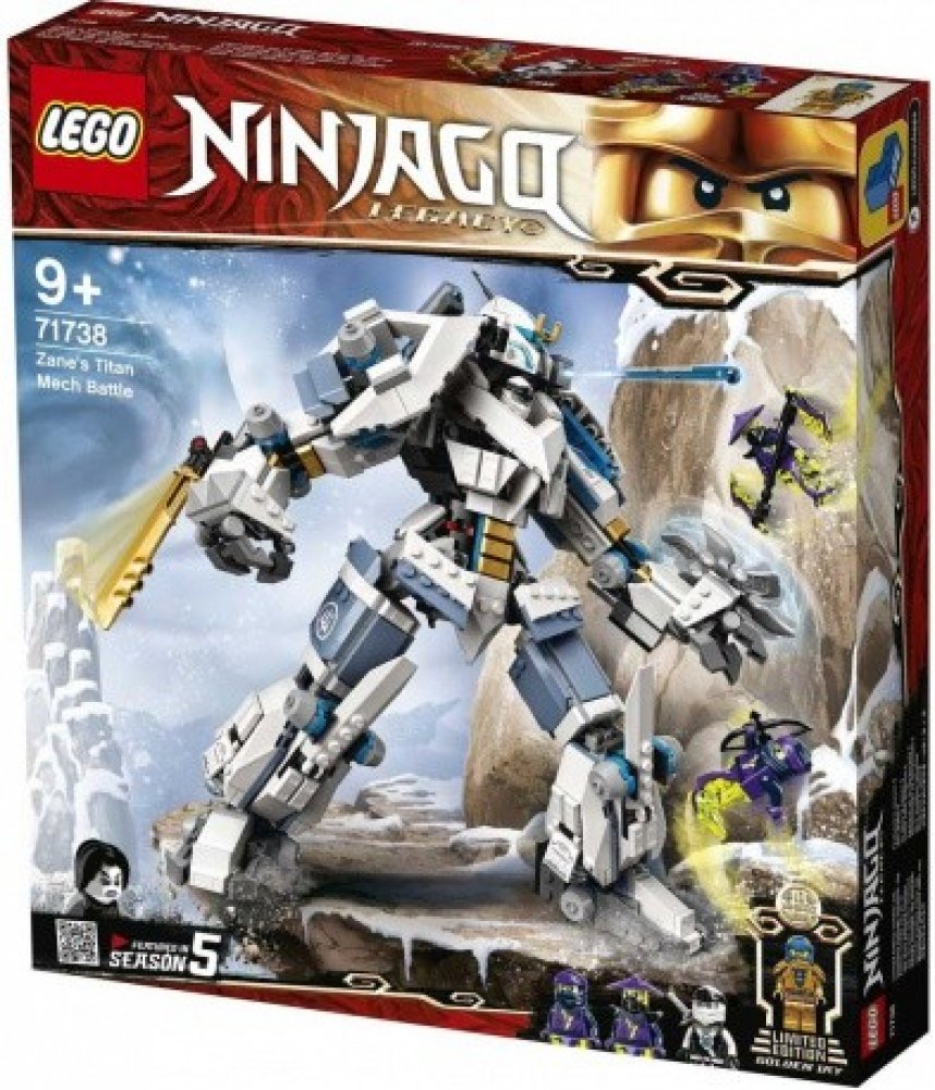 Dejte mladým fanouškům nindžů možnost přehrávat si vzrušující scény z 5. řady seriálu LEGO® NINJAGO® se stavebnicí z edice Legacy – Zane a bitva s titánskými roboty (71738).