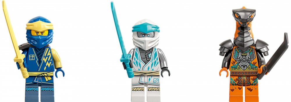 - 3 mini figurky – Jay, Zane a Boa Destructor