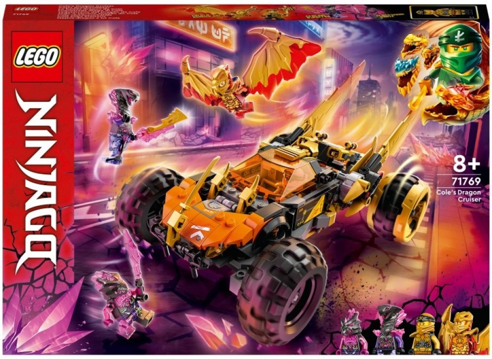 - Dračí stavebnice NINJAGO® – Děti si jistě rády připomenou akční scény ze seriálu NINJAGO: Crystallized se stavebnicí Coleův dračí teréňák (71769) od LEGO® NINJAGO