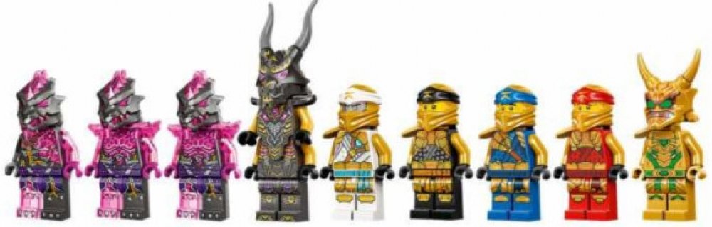 - 9 minifigurek – Čekají na vás exkluzivní zlatý přízrak Lloyd, zlatý Kai, zlatý Jay, zlatý Cole, zlatý Zane, Křišťálový král, mstivý válečník a 2 mstivé bestie