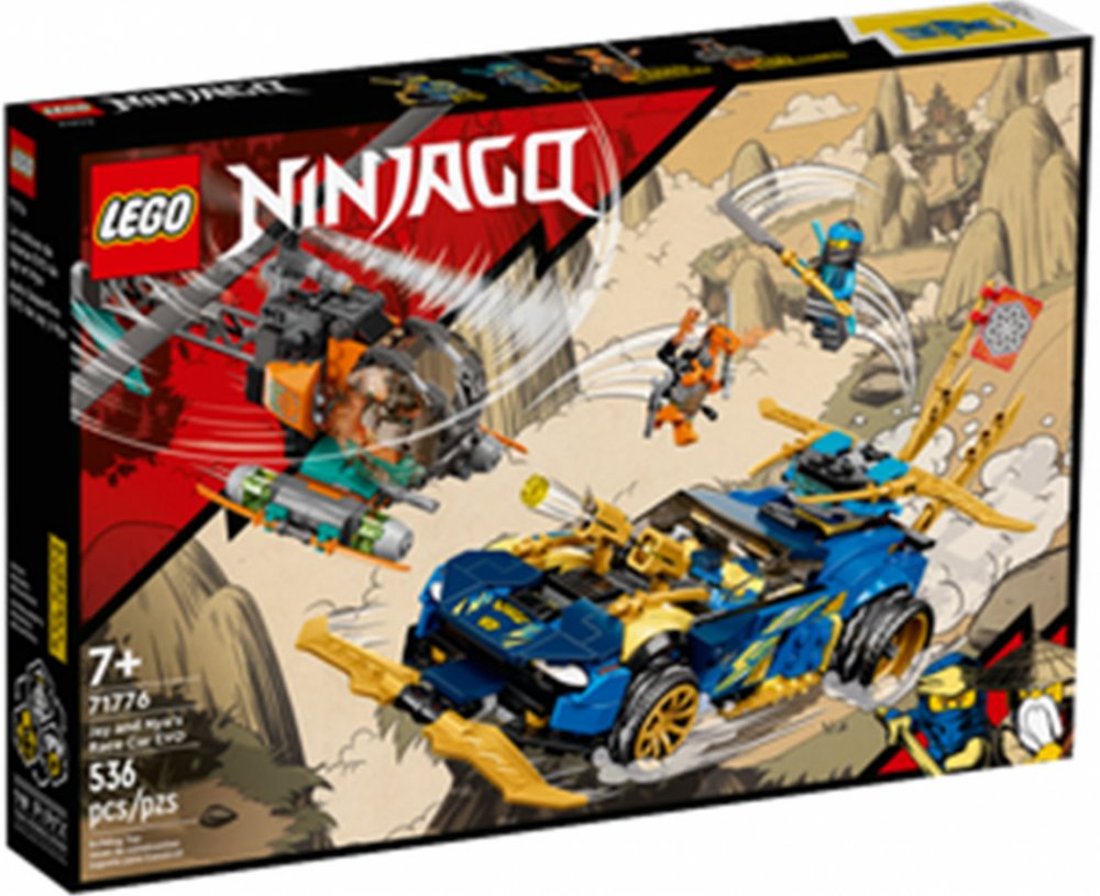 Stavebnice Závoďák Jaye a Nyi EVO (71776) dětem od 7 let umožní přehrávat si strhující dobrodružství v NINJAGO® City. Nindžovská sada nabízí cool obrněné závodní auto se dvěma vystřelovači a odnímatelným letounem a hadí helikoptéru s otáčející se vrtulí.