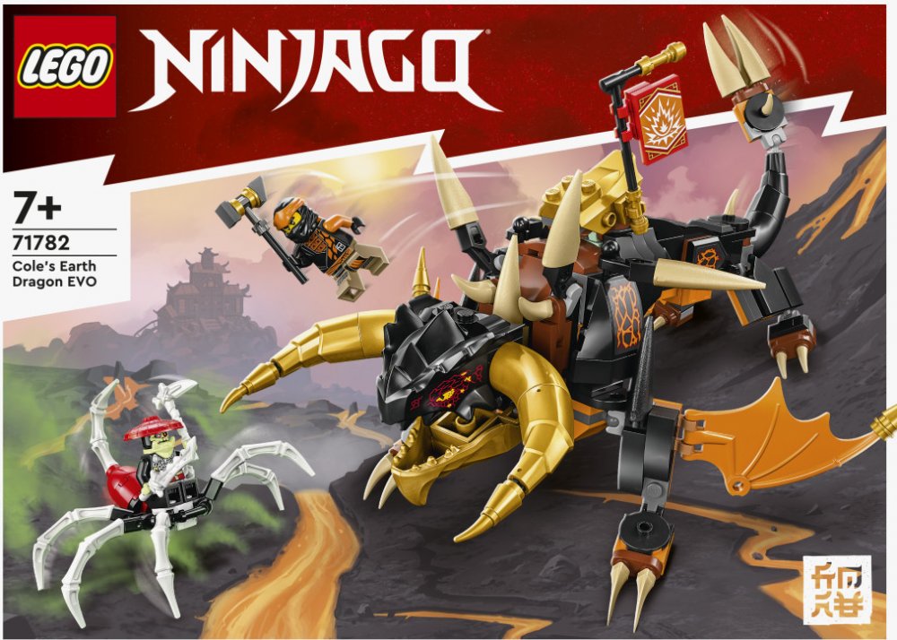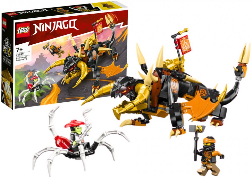 Děti od 7 let se nechají pohltit vzrušujícími bitvami se stavebnicí Coleův zemský drak EVO od LEGO® NINJAGO® (71782). Děti mohou vylepšit model pohyblivého draka s pomocí zlatých křídel, rohů a ocasu, aby byl ještě mocnější.