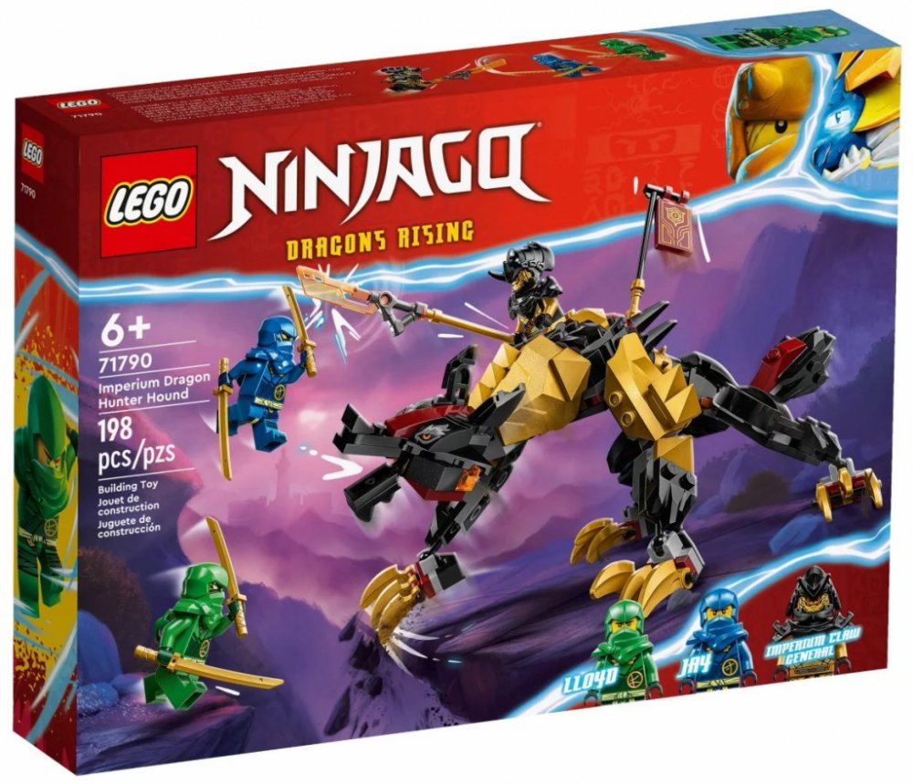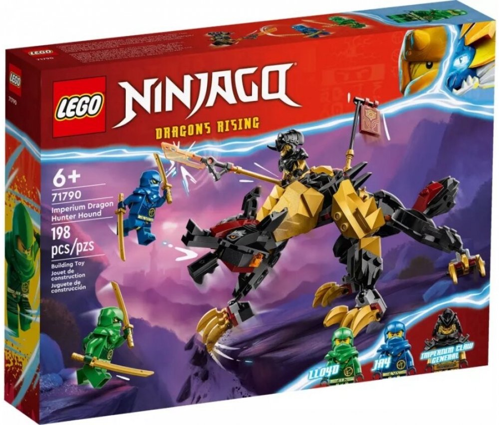 LEGO® NINJAGO® 6 let 198 ks draci Ninjago pro kluky LEGO® 2023 Ano, od 7 let 1-3 hodiny 1 model 20 × 13 × 10 cm Lloyd, Jay, císařský generál černá, zlatá, červená 3 ks