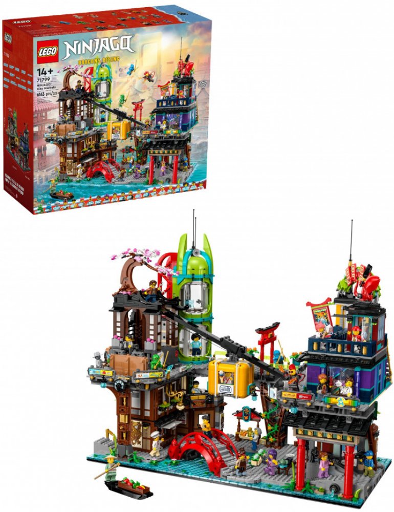 S více než 6 000 dílky je LEGO® stavebnice LEGO® Ninjago® 71799 Trhy v NINJAGO® City určena pro zkušenější stavitele od 14 let, kteří ocení náročnost i estetickou kvalitu výsledného modelu. Modulární konstrukce umožňuje snadné odpojení jednotlivých pater, což zlepšuje přístupnost při hraní nebo vystavování. Model navíc skvěle zapadá do řady dalších NINJAGO® městských staveb, a tak rozšiřuje možnosti propojení s předchozími sadami. LEGO® Ninjago® 71799 Trhy v NINJAGO® City je nejen působivou hračkou, ale také výrazným sběratelským kouskem, který zaujme čestné místo v každé sbírce.