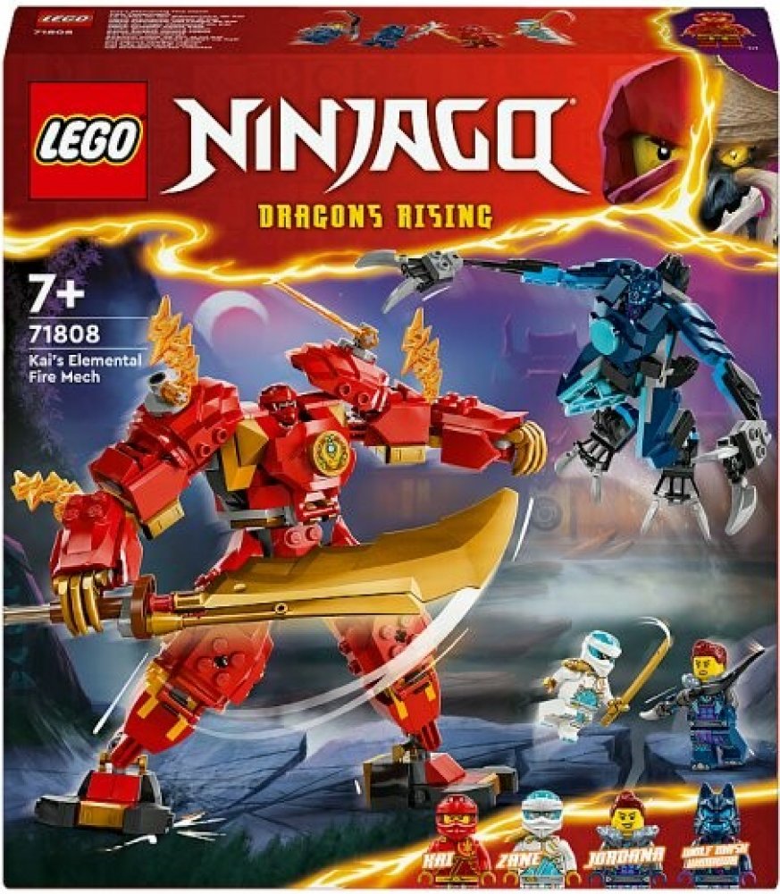 Děti od 7 let si se stavebnicí Kaiův živelný ohnivý robot připomenou své oblíbené scény z 2. řady televizního seriálu NINJAGO Dračí povstání. Robot má pohyblivé končetiny, které lze naklánět a otáčet do dramatických bojových póz, kokpit pro minifigurku nindži a velký zlatý meč, který se bude hodit v bitvách proti robotovi vlčího klanu.