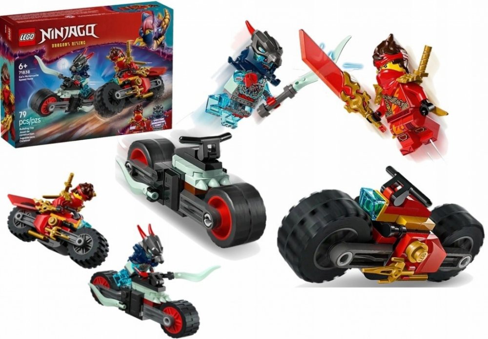 Se stavebnicí Kai a závody na motorkách si kluci a holky od 6 let připomenou akční scény z 3. řady televizního seriálu NINJAGO Dračí povstání. Tato akcí nabitá stavebnice obsahuje 2 nindžovské motorky s pohyblivými koly: Kaiovu závodní motorku ozdobenou 2 dýkami a démonickou motorku Přízračného dračího zvěda. Tato nindžovská stavebnice obsahuje 2 minifigurky NINJAGO, které můžou řídit motorky: Kaie vyzbrojeného průsvitnou odhalující čepelí a 2 zlatými katanami a Přízračného dračího zvěda s mečem. Děti si s touto stavebnicí užijí hodiny kreativního hraní na bitvy dobra proti zlu, ať už sólo nebo s kamarády.