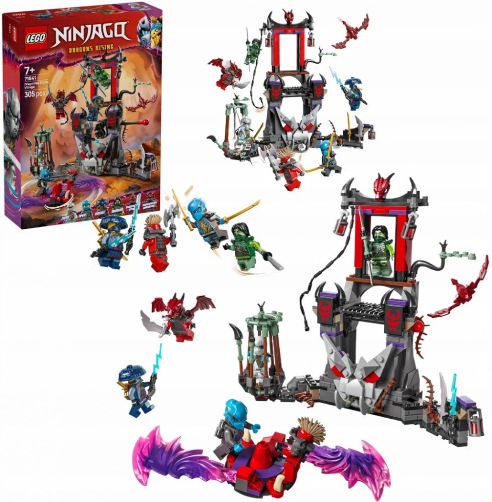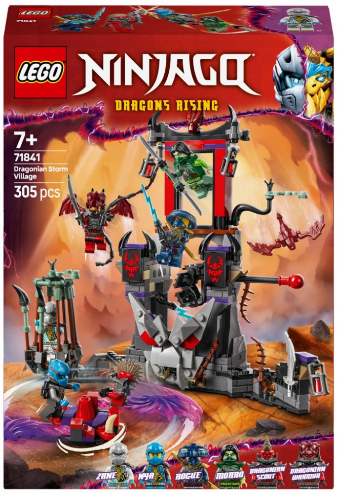 Malí milovníci nindžů si připomenou velkolepé scény boje dobra proti zlu z 3. řady televizního seriálu NINJAGO® Dračí povstání díky stavebnici Vesnice dračí bouře (71841). Tato působivá bojová aréna je plná úchvatných prvků a interaktivních bojových funkcí, se kterými si holky a kluci od 7 let užijí hodiny zábavného hraní.