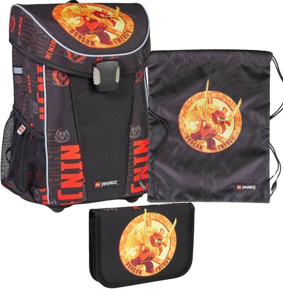 Moderní a extra lehká aktovka pro prvňáčky vysoké 116-125cm s hmotností pouhých 800 g nabízí ergonomicky tvarovaná záda, polstrované popruhy, hrudní pás a přihrádku na těžší učebnice pro rovnoměrné rozložení váhy. Prostorná hlavní kapsa s organizérem a klipem na klíče Víko s plastovým zámkem – snadné otevírání jednou rukou Dvě boční síťované kapsy na láhev nebo svačinu Reflexní prvky ze všech stran Stabilní vyztužené dno s ochrannými nožkami Odolný vodoodpudivý materiál Rozměry: 29 × 39 × 22 cm | Objem: 18 l | Hmotnost: 800 g Perfektní kombinace pohodlí, bezpečnosti a ikonického LEGO designu – ideální volba pro školní začátek! Perfektní LEGO pytlík na tělocvik výlety, sport či volný čas. Snadno se otevírá a zavírá. Bezpečnostní pojistka rozepne popruhy při silném zatažení. Pytlík je vyrobený z odolného materiálu bez použití PVC. Je ideální například k nošení přezůvek či mokrého ručníku. Popis pytlíku: velmi lehký zavírání na šňůrky bezpečnostní pojistka odolný materiál Rozměry: 34 x 42 cm (Š x V) Hmotnost: 100 g Objem: 11 l Materiál: Poly 210D (100% Polyester) LEGO penál s náplní obsahuje všechny potřebné psací potřeby do školy. Penál je dodáván s náplní: 2 grafitové tužky, 10 barevných pastelek, 4 široké barevné pastelky, guma na gumování, ořezávátko, rovné a trojúhelníkové pravítko. Penál obsahuje rozvrh hodin v průhledné kapse a všitou vnitřní jmenovku. Je vyrobený z odolného materiálu bez použití PVC. K dostání v mnoha oblíbených LEGO motivech. Ideální pro první ročník základní školy. Popis penálu: jednopatrový penál s výklopným panelem průhledná kapsička s rozvrhem hodin štítek na jméno a telefon 22 poutek pro školní pomůcky Náplň: 2 tužky, 10 pastelek, 4 široké pastelky, guma na gumování, ořezávátko, 2 pravítka. Rozměry: 14 x 20 x 4 cm (Š x V x H) Hmotnost: 320 g Objem: 0,5 l Materiál: Poly 300D rPET w/WR (100% Polyester)