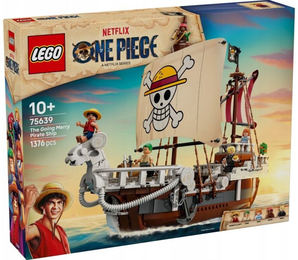 Tato ikonická loď má hned několik vnitřních prostor: kajutu pro posádku, kuchyň, sklad a dílnu na příslušenství. Součástí modelu je 5 minifigurek LEGO ONE PIECE. Luffy sedí na figuře ovce na přídi lodi, pod kterou je dělo, Zoro odpočívá a trénuje na palubě, Nami ovládá kormidlo, zatímco na zadní palubě rostou její oblíbené mandarinky, Usopp šplhá po stěžních a drží stráž a Sanji nese hrnce dolů po schodech do kuchyně. Nechybí 4 plakáty s hledanými osobami. Aplikace LEGO Builder umožňuje dětem přibližovat a otáčet modely ve 3D a sledovat pokrok. Stavebnice obsahuje 1376 dílků.