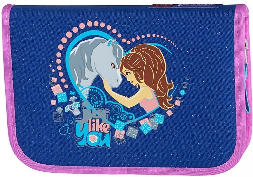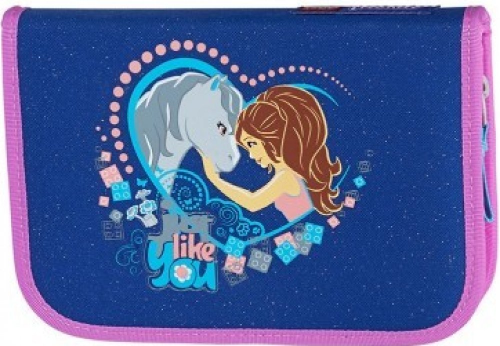Stylové pouzdro (penál) Lego Friends Horse. Pouzdro je bez náplně, obsahuje 22 poutek pro školní pomůcky, rozvrh hodin a štítek na jméno a telefon. Pouzdro je uzavíratelné na zip s poutkem. Velikost: 20x14x3 cm