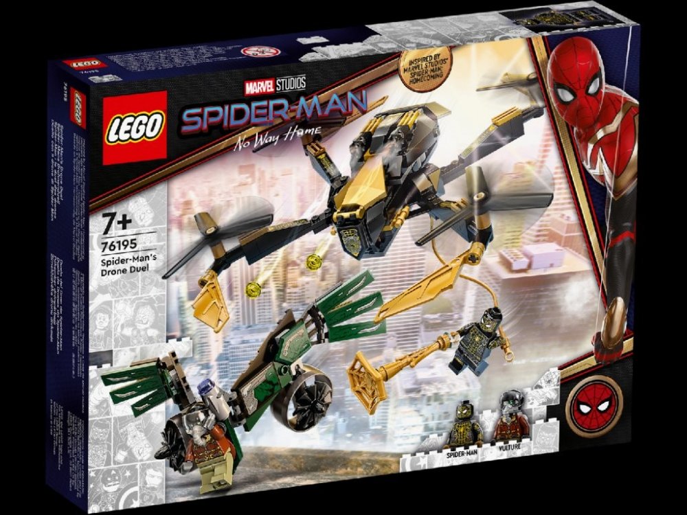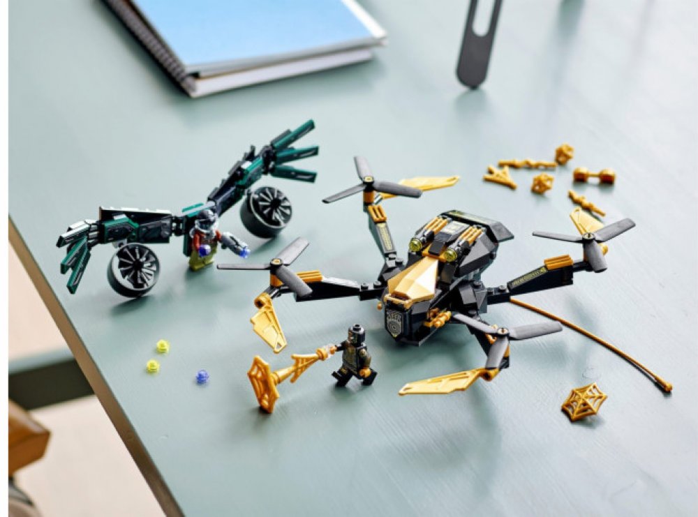 - Obsahuje 2 minifigurky, které inspirují nejeden nápaditý příběh – Spider-Mana a Vultura – a navíc sestavitelný dron se 4 rotory a 2 vystřelovači.