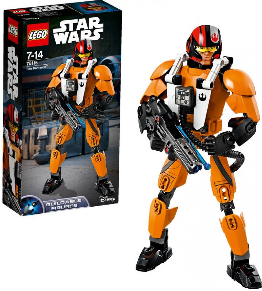 - Sestavitelná a vysoce pohyblivá figurka Poe Damerona obsahuje leteckou kombinézu s detaily záchranné vesty, pružinový vystřelovač s náboji navíc a blasterovou pistoli.