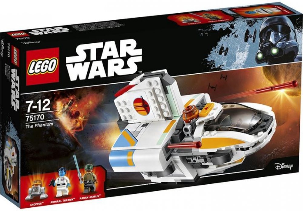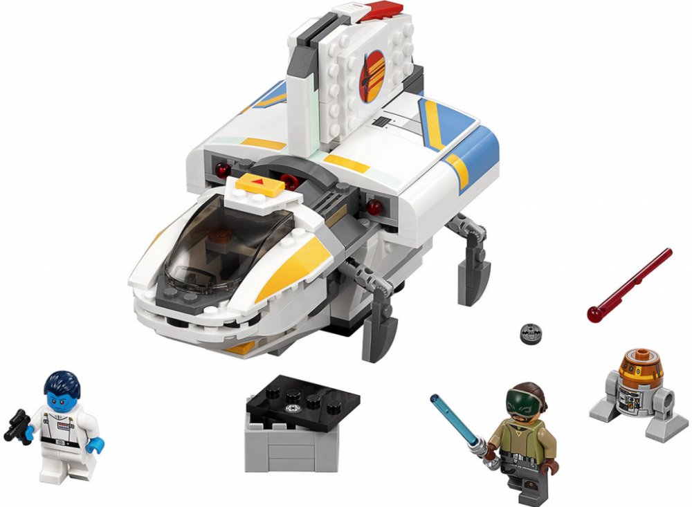 Uleť Admirálovi Thrawnovi v povstalecké lodi Phantom, která má zatahovací podvozek, otevírací kokpit pro minifigurku, který je možné v případě potřeby odpojit od zbytku lodi, dvojité pružinové vystřelovače, otevírací zadní úložný prostor s krabicí, v níž je rozbuška, a prostor vedle kokpitu pro Kananova kamaráda astro droida, Choppera. Obsahuje dvě minifigurky a droida.