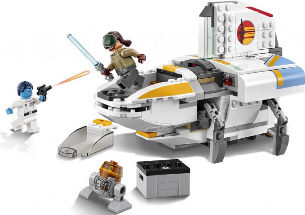 Uleť Admirálovi Thrawnovi v povstalecké lodi Phantom, která má zatahovací podvozek, otevírací kokpit pro minifigurku, který je možné v případě potřeby odpojit od zbytku lodi, dvojité pružinové vystřelovače, otevírací zadní úložný prostor s krabicí, v níž je rozbuška, a prostor vedle kokpitu pro Kananova kamaráda ...